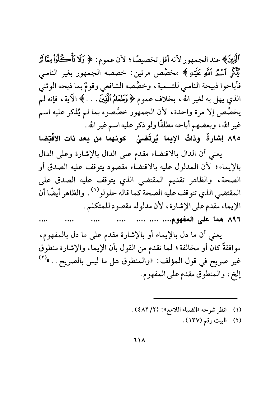 ٨٩٥ - إشارةٌ وذاتُ الإيما يُرتَضى ... كونهما من بعد ذات الاقْتِضا