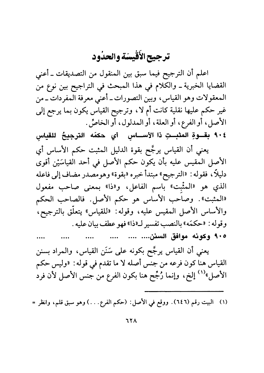 ٩٠٤ - بقوةِ المثبتِ ذا الأساسِ ... أي حكمَه الترجيحُ للقياسِ