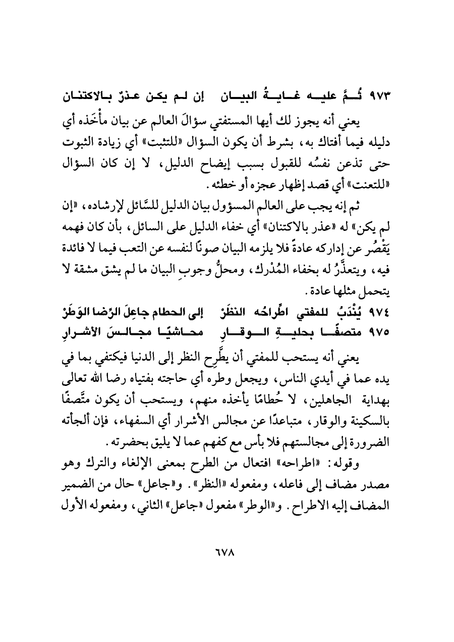٩٧٤ - يُنْدَبُ للمفتي اطِّراحُه النظَرْ ... إلى الحطام جاعِلَ الرِّضا الوَطَرْ