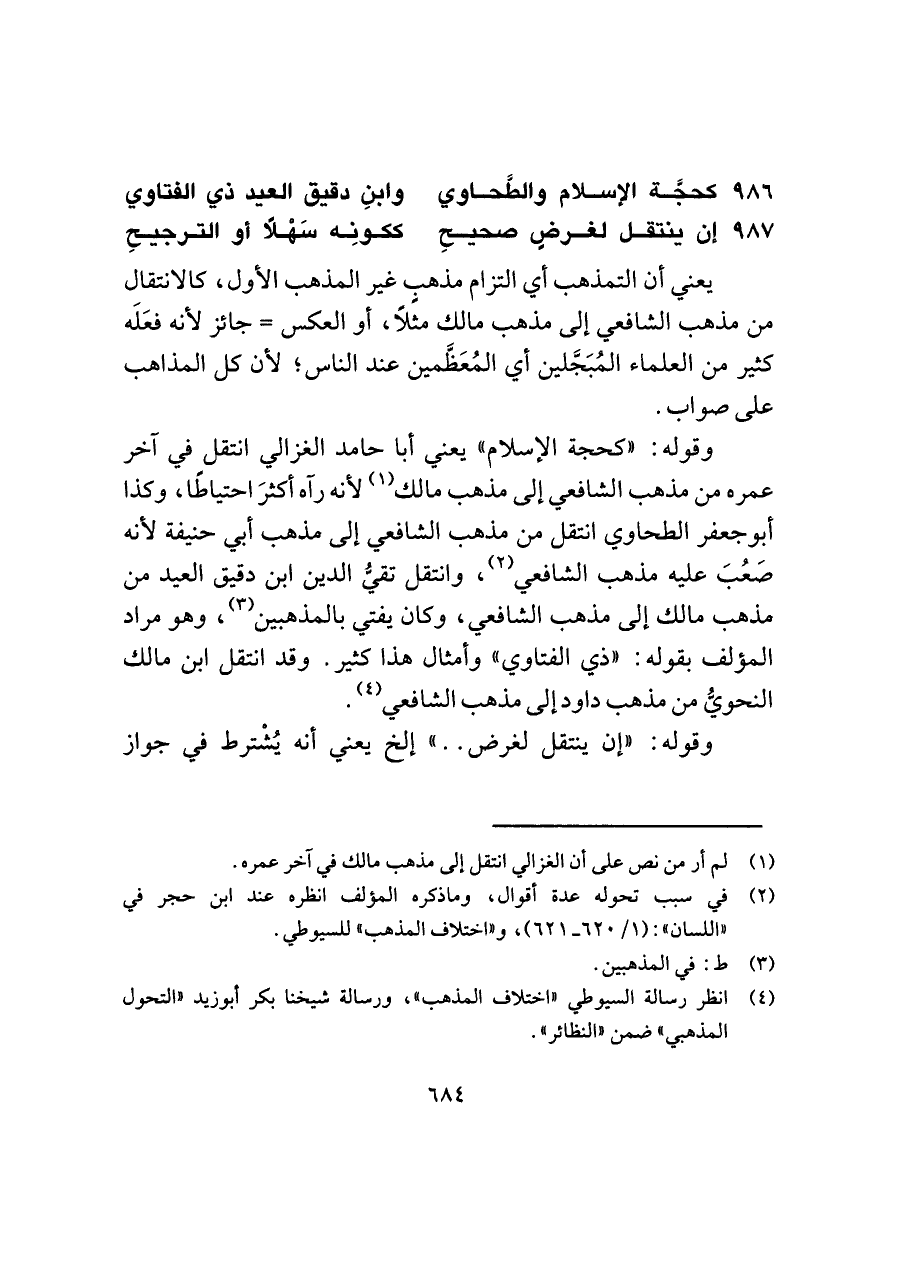 ٩٨٦ - كحجَّة الإسلام والطَّحاوي ... وابنِ دقيق العيد ذي الفتاوي