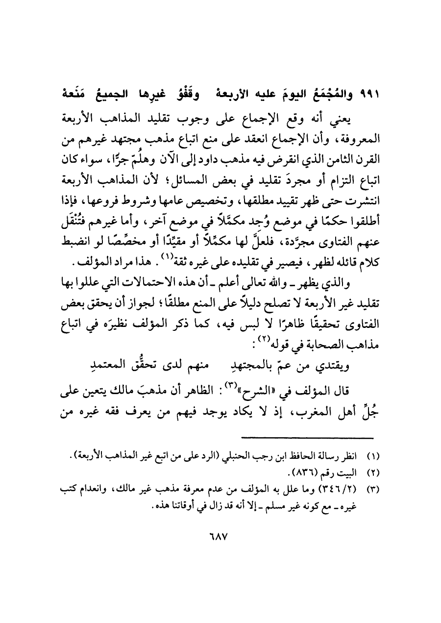(¬١) انظر رسالة الحافظ ابن رجب الحنبلي (الرد على من اتبع غير المذاهب الأربعة).