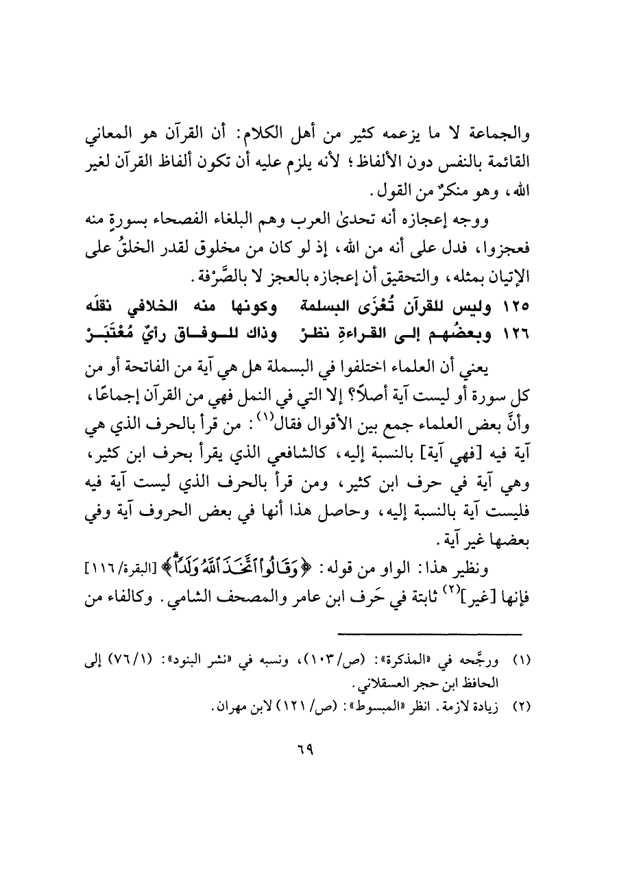 ١٢٥ - وليس للقرآن تُعْزَى البسلمة ... وكونها منه الخلافي نقلَه