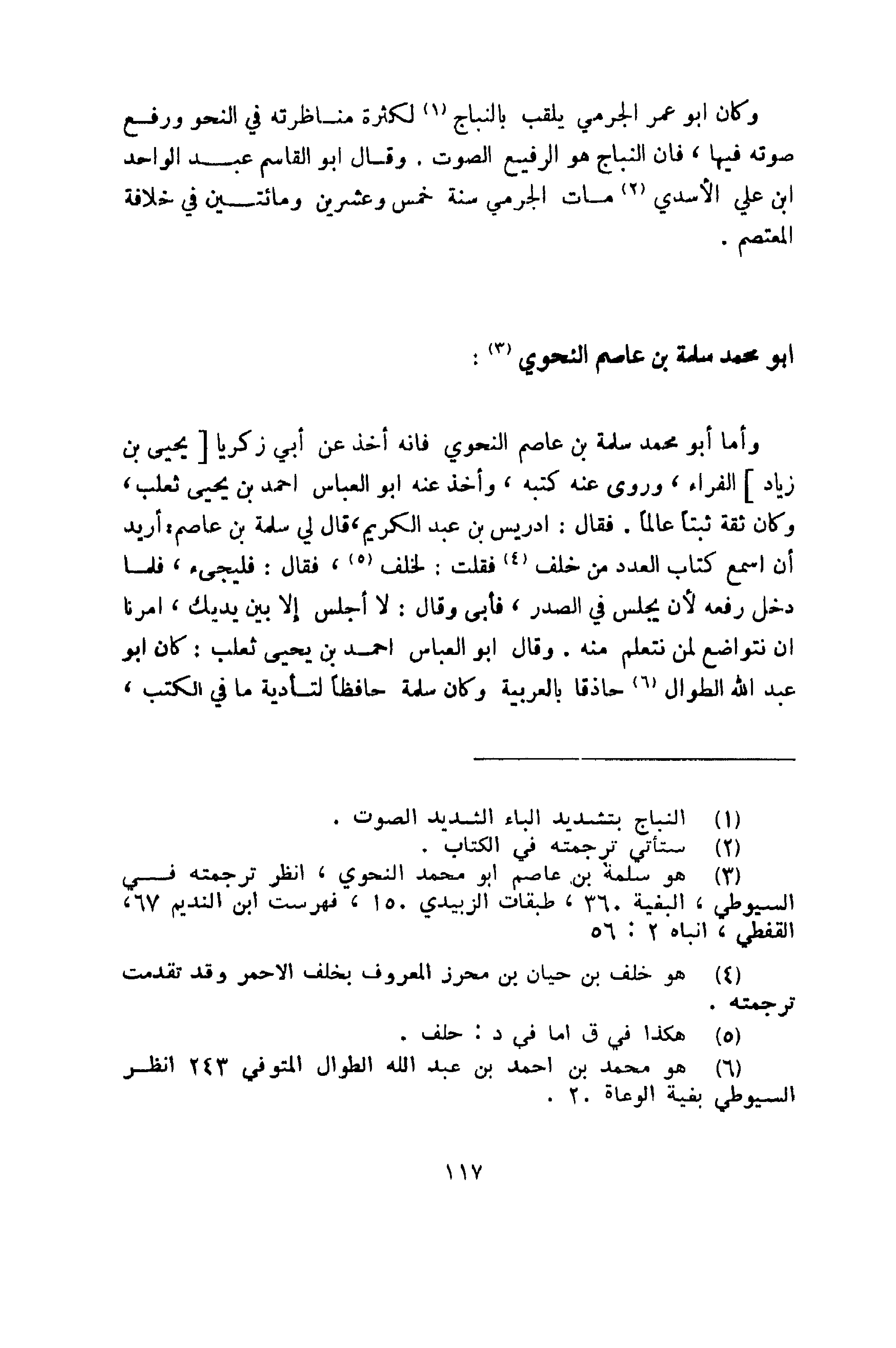 وأما أبو محمد سلمة بن عاصم النحوي؛ فإنه أخذ عن أبي زكريا يحيى بن زياد الفراء؛ وروى عنه كتبه، وأخذ عنه أبو العباس أحمد بن يحيى ثعلب. وكان ثقة ثبتاً عالماً.