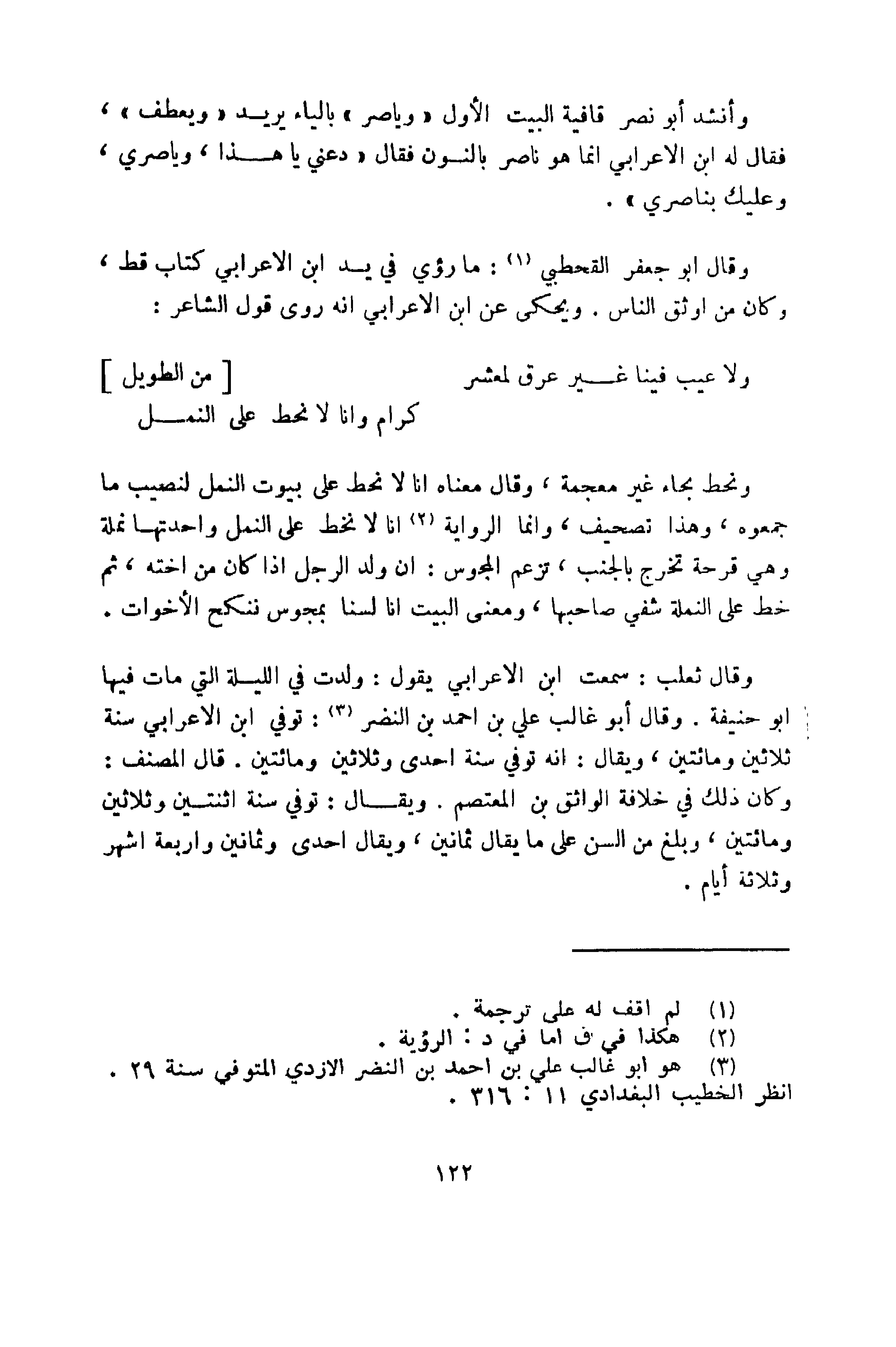 وقال أبو غالب علي بن أحمد بن النضر: توفي ابن الأعرابي في سنة إحدى وثلاثين ومائتين.