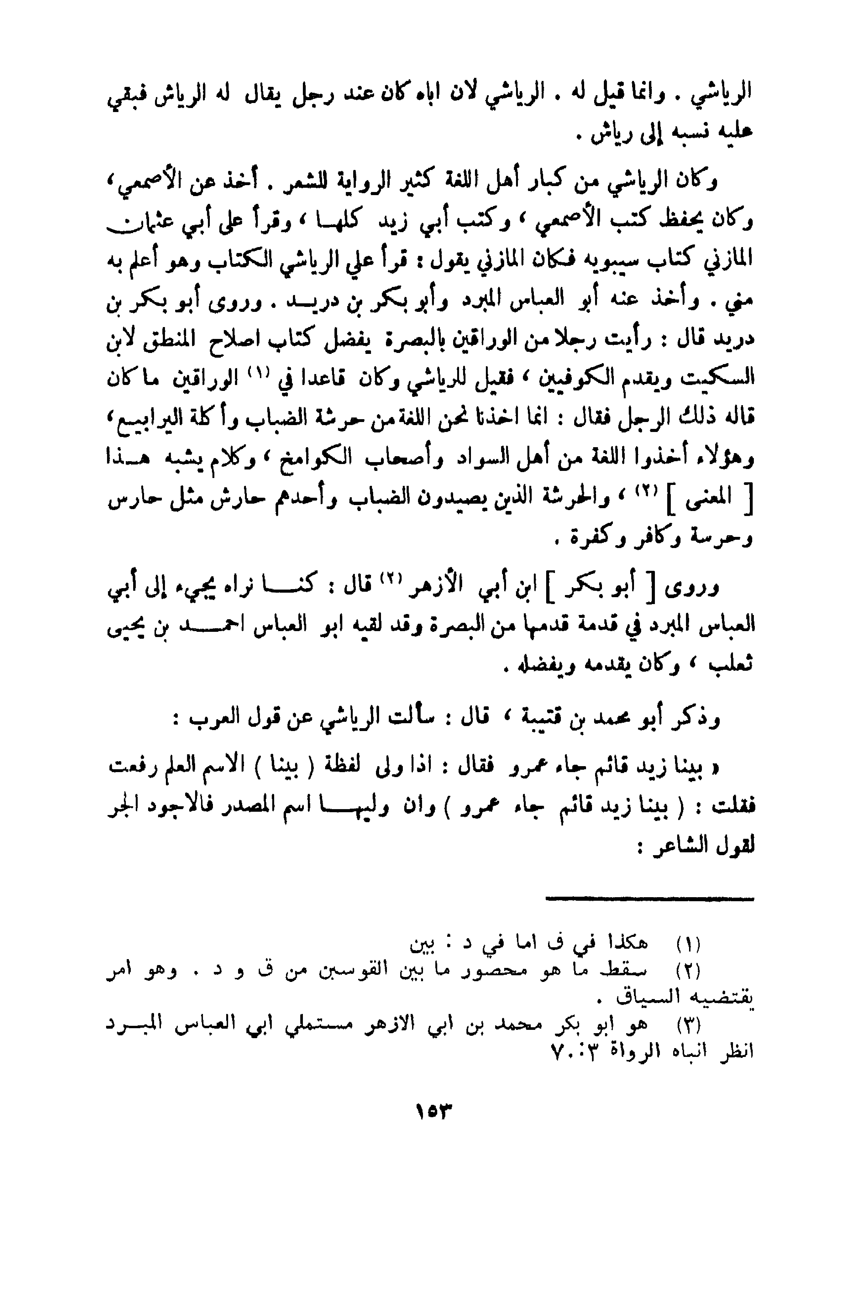 الهاشمي؛ وإنما قيل له الرياشي؛ لأن أباه كان عبداً لرجل يقال له: رياش؛ فبقي عليه نسبه إلى رياش.