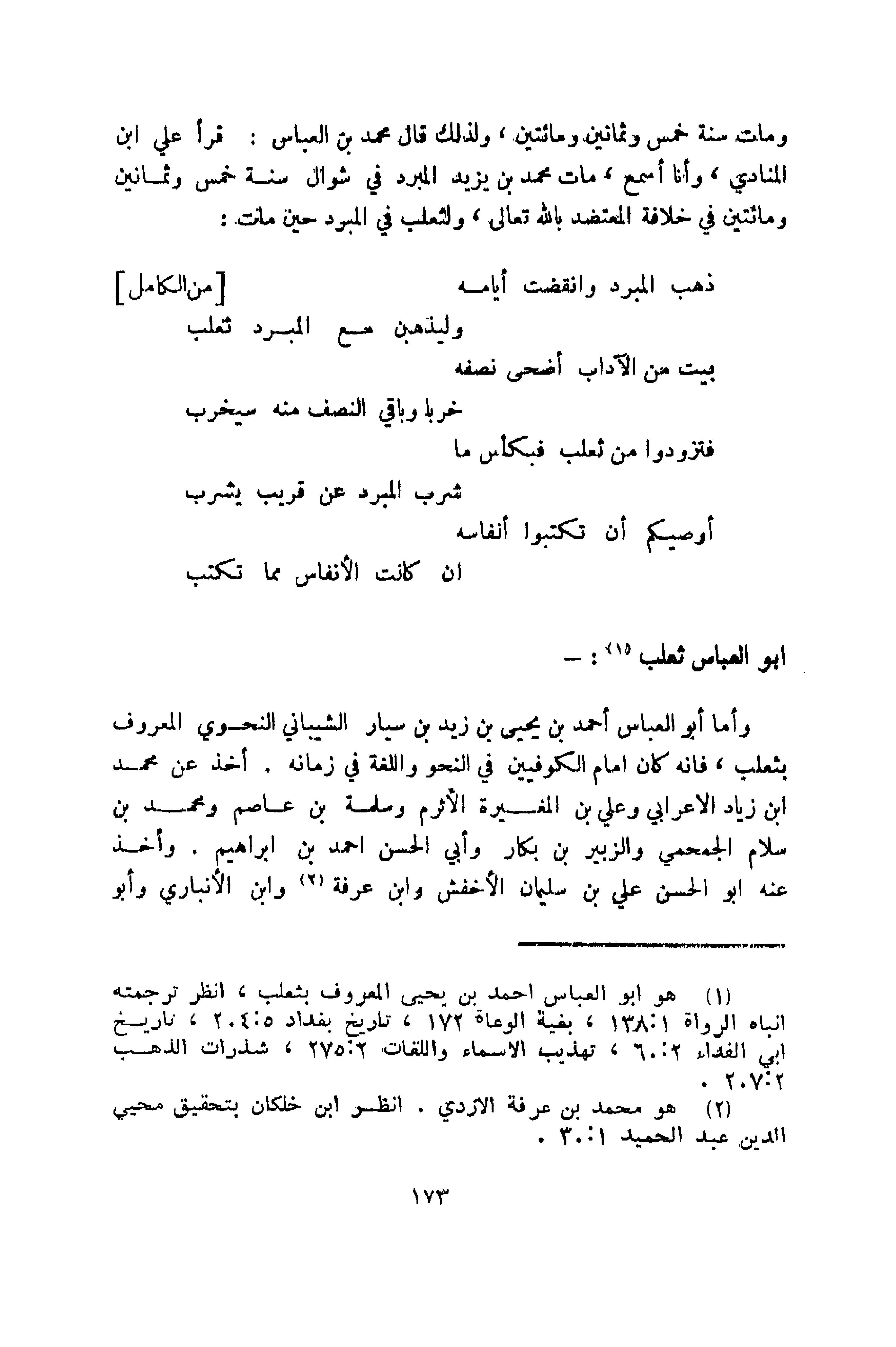 ذهب المبرد وانقضت أيامه ... وليذهبن مع المبرد ثعلبا.