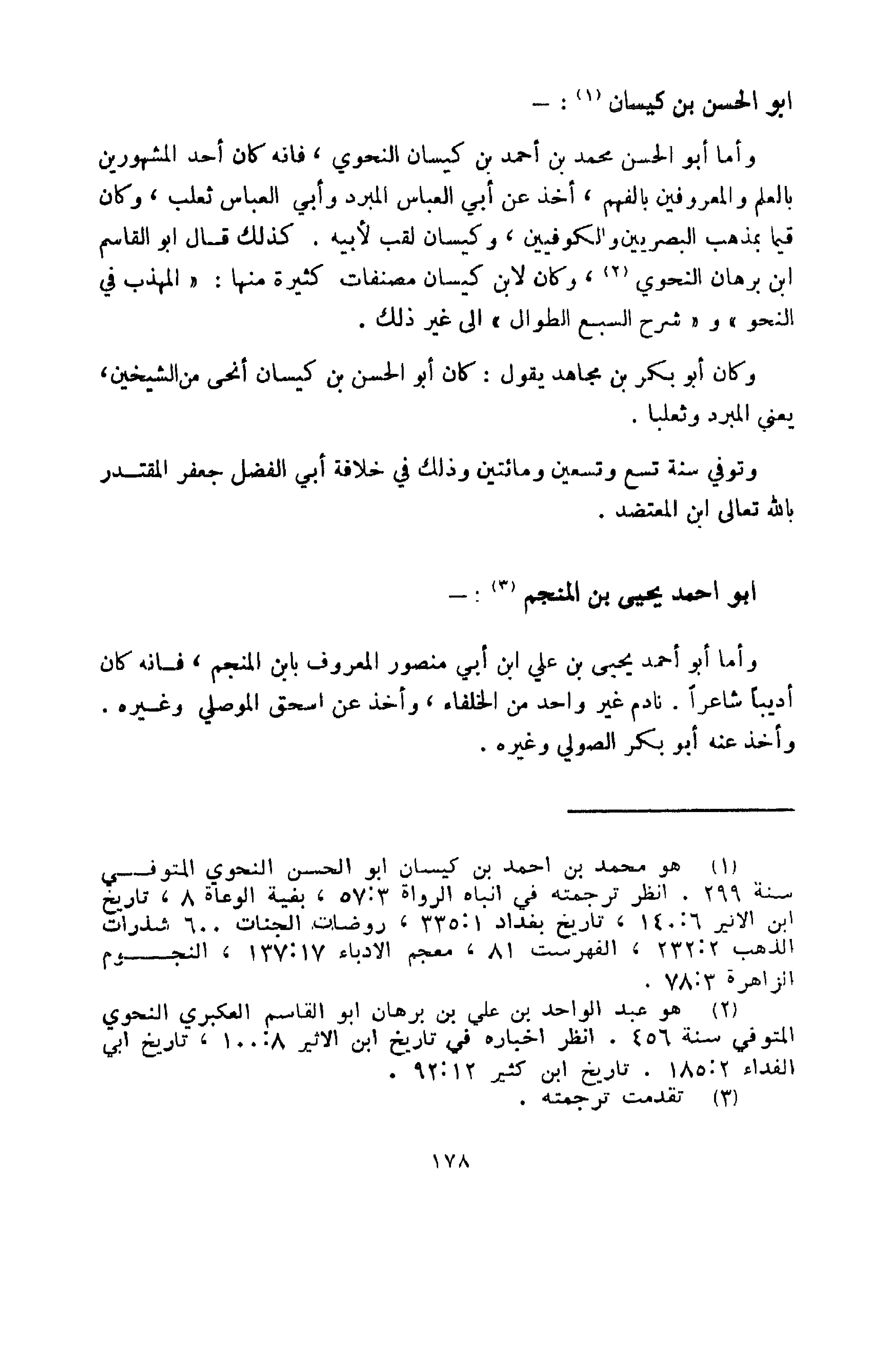 وكان أبو بكر بن مجاهد يقول: كان أبو الحسن بن كيسان أنحى من الشيخين - يعني المبرد وثعلبا.