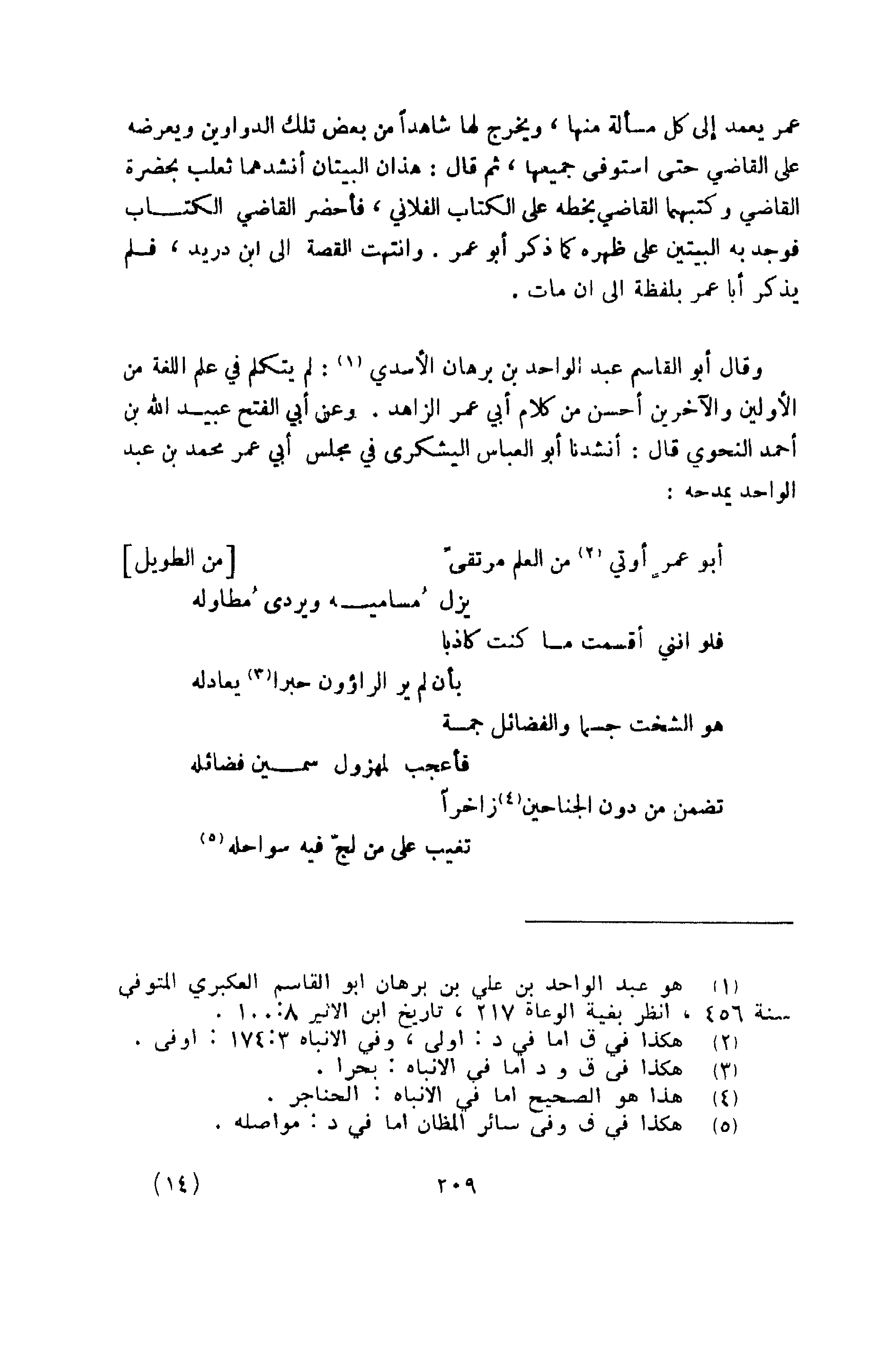 وعن أبي الفتح عبيد الله بن أحمد النحوي، قال: أنشدنا أبو العباس اليشكري في مجلس أبي عمر محمد بن عبد الواحد يمدحه: