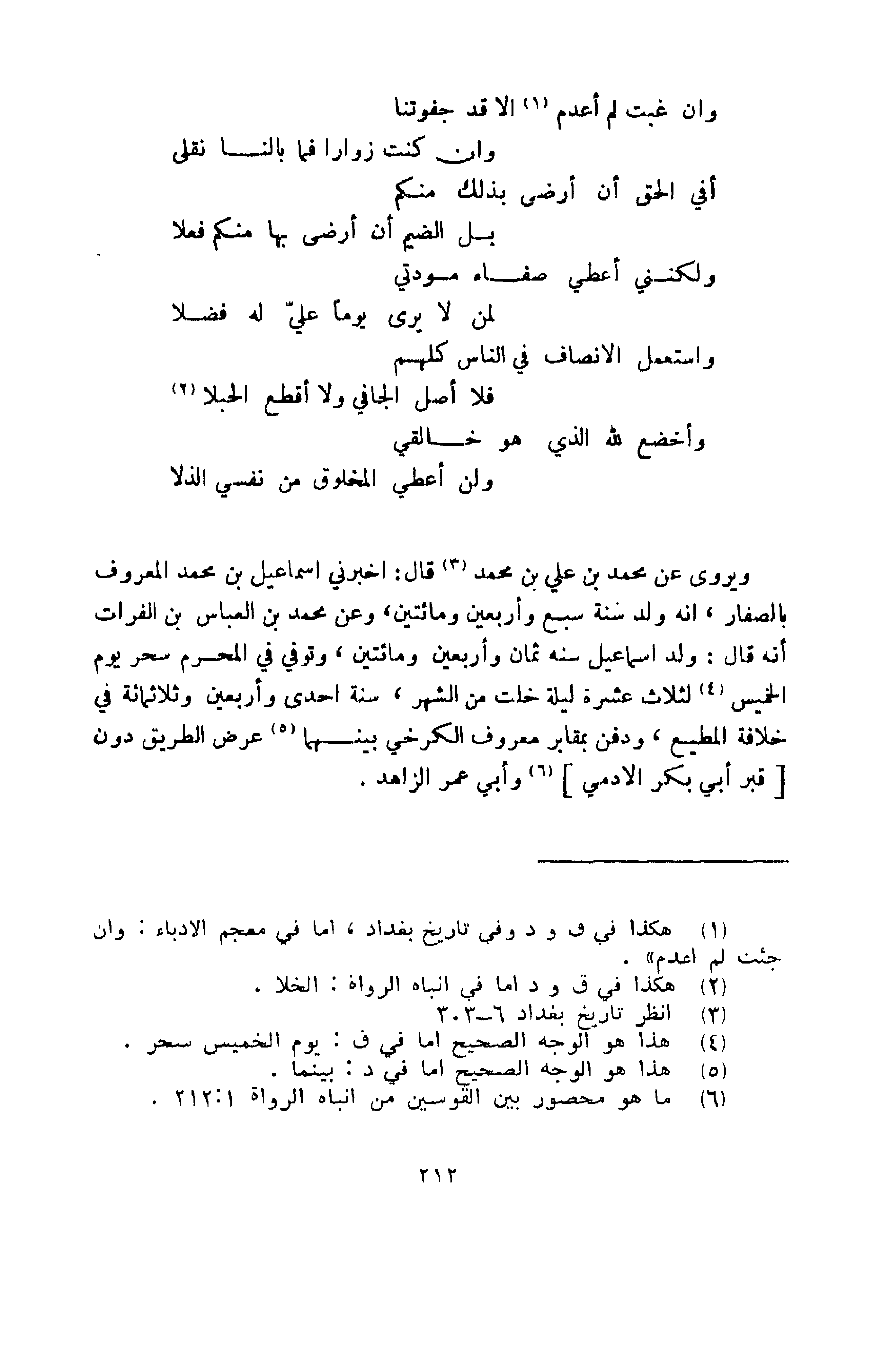 ويروى عن محمد بن علي بن محمد، قال: أخبرني إسماعيل بن محمد المعروف بالصفار، أنه ولد سنة سبع وأربعين ومائتين.