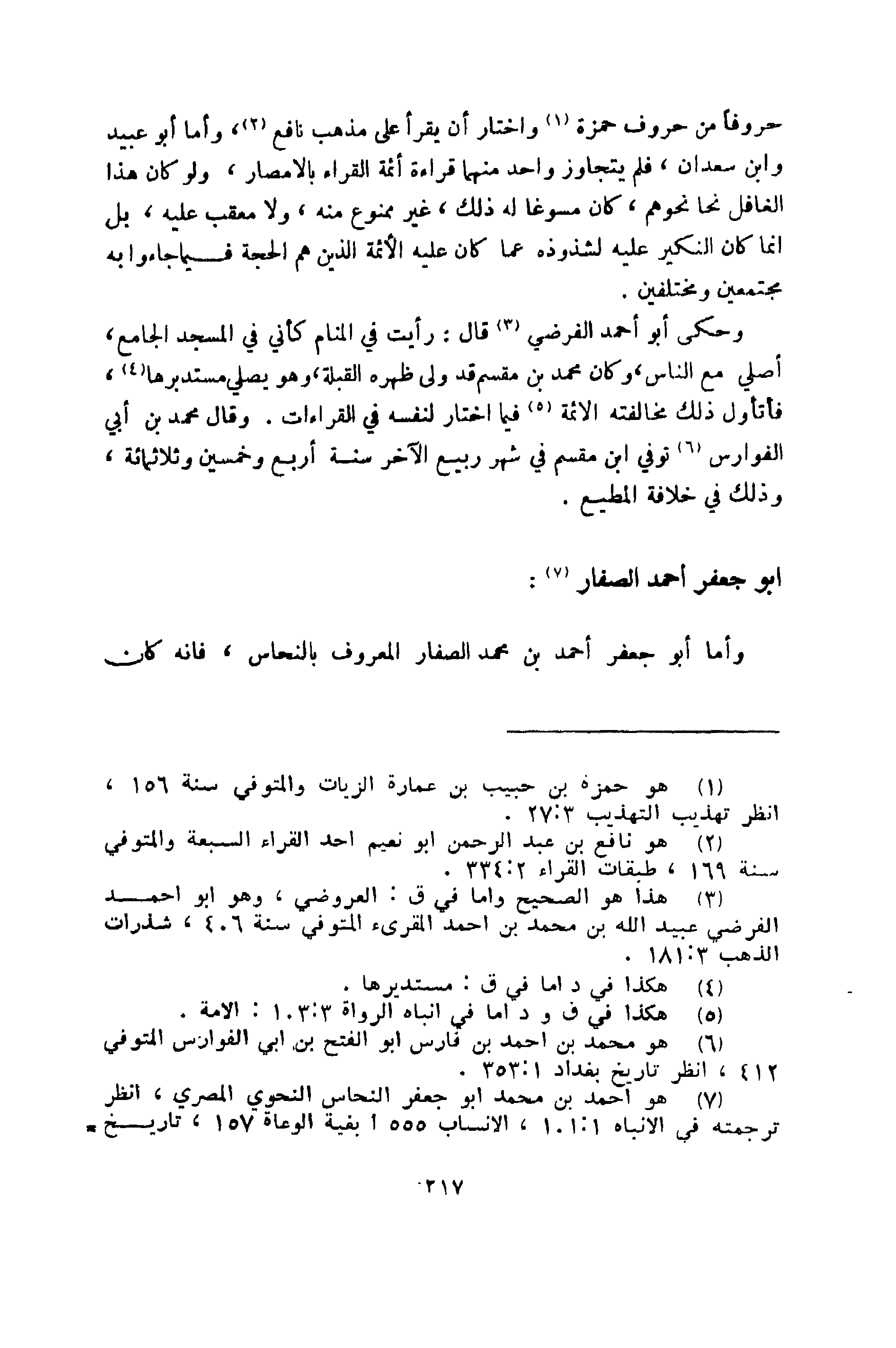 وأما أبو جعفر أحمد بن محمد [بن إسماعيل] الصفار المعروف بالنحاس، فإنه كان