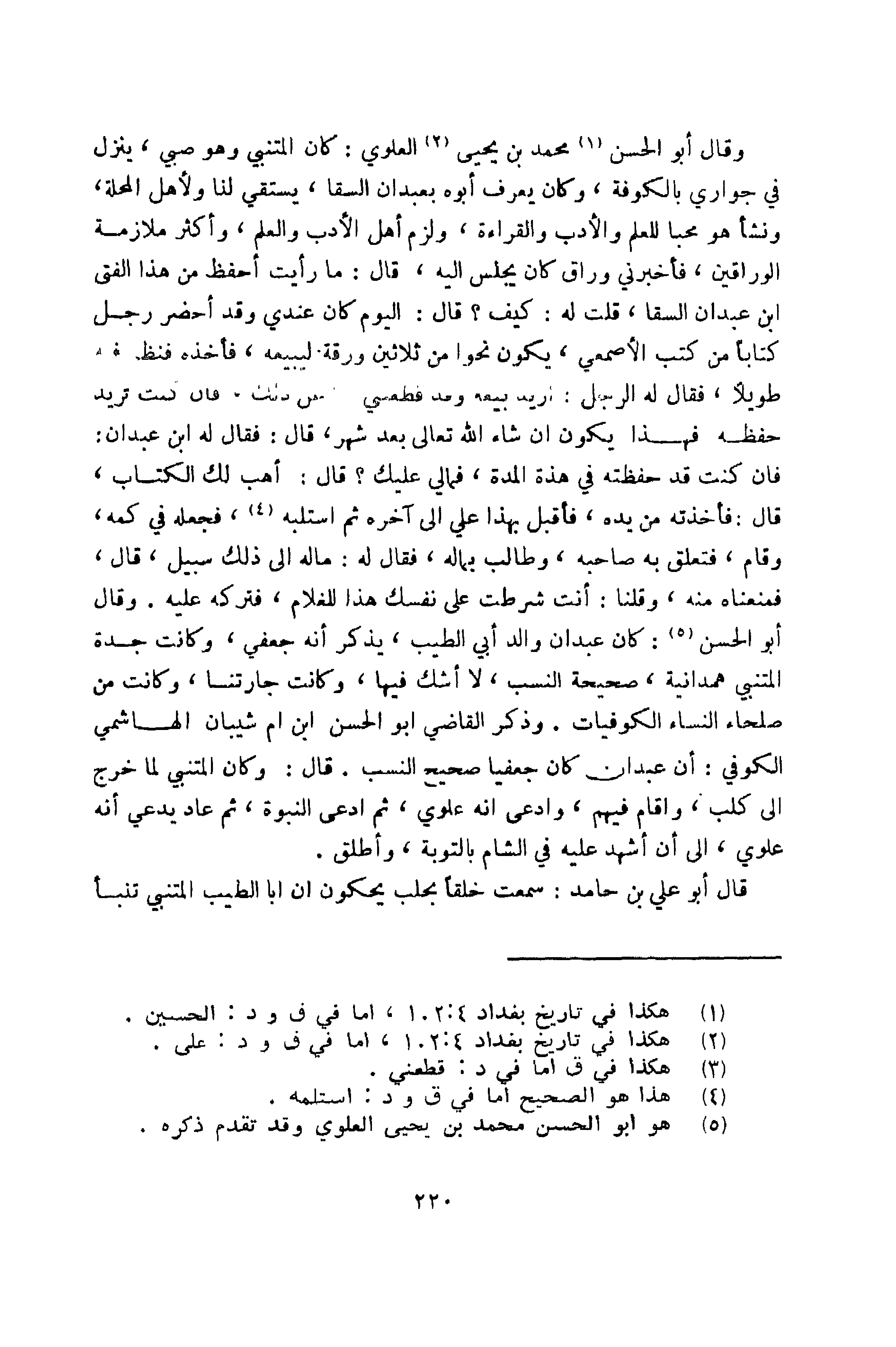 قال أبو علي بن حامد: سمعت خلقاً بحلب يحكون أن أبا الطيب المتنبي تنبأ
