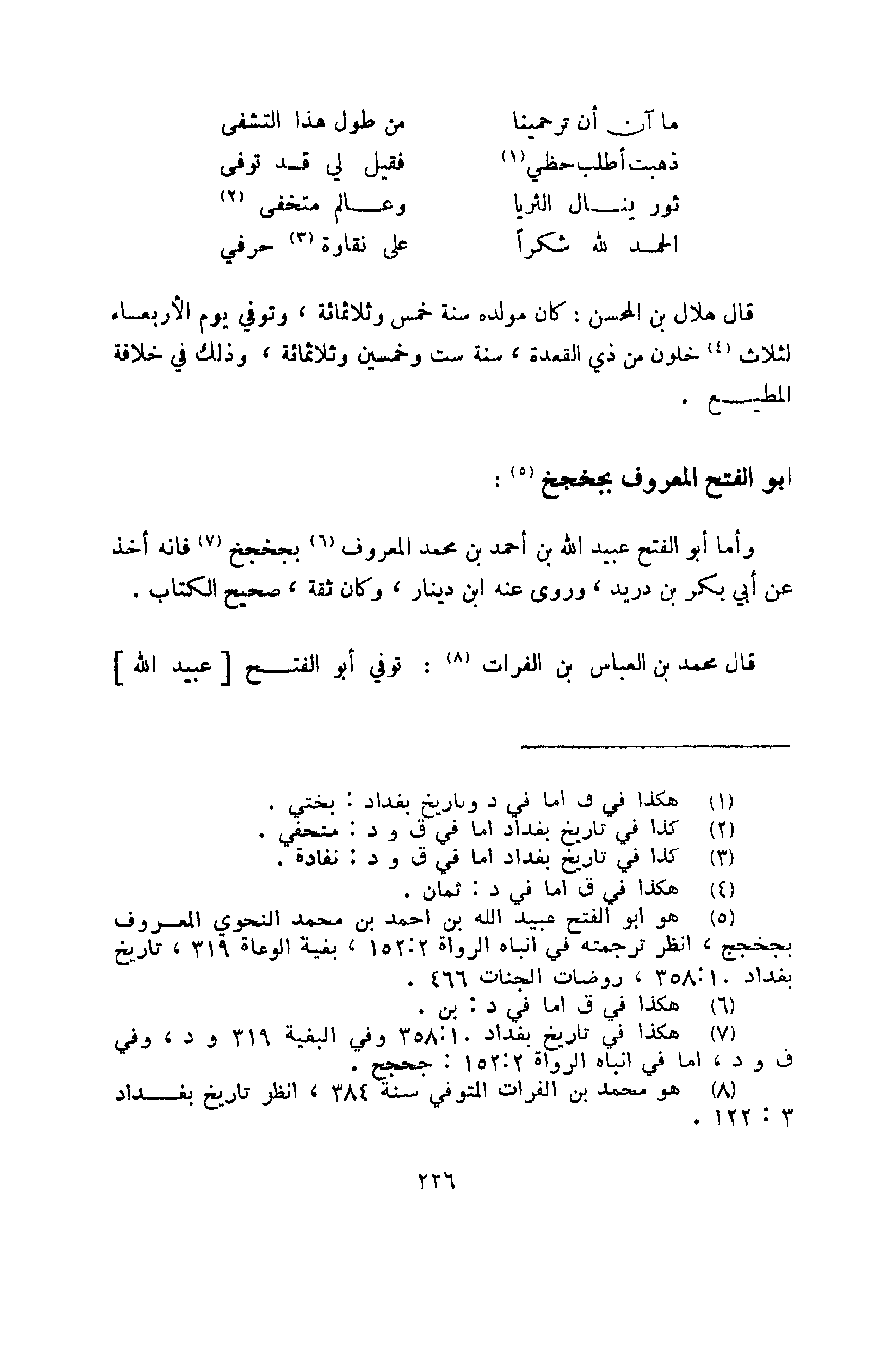 قال محمد بن العباس بن الفرات: توفي أبو الفتح