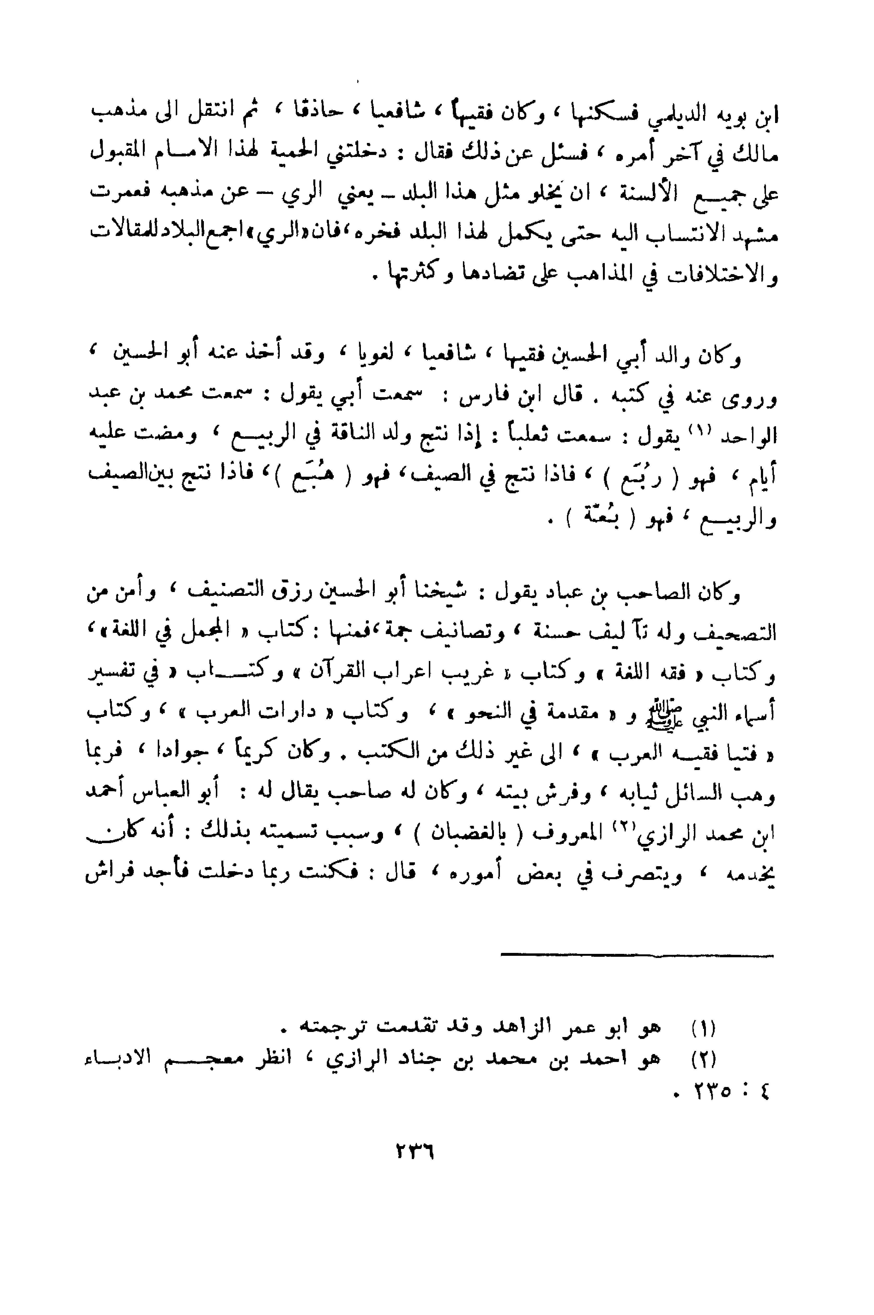 الصاحب بن عباد يقول: شيخنا أبو الحسن رزق التصنيف، وأمن من التصحيف.