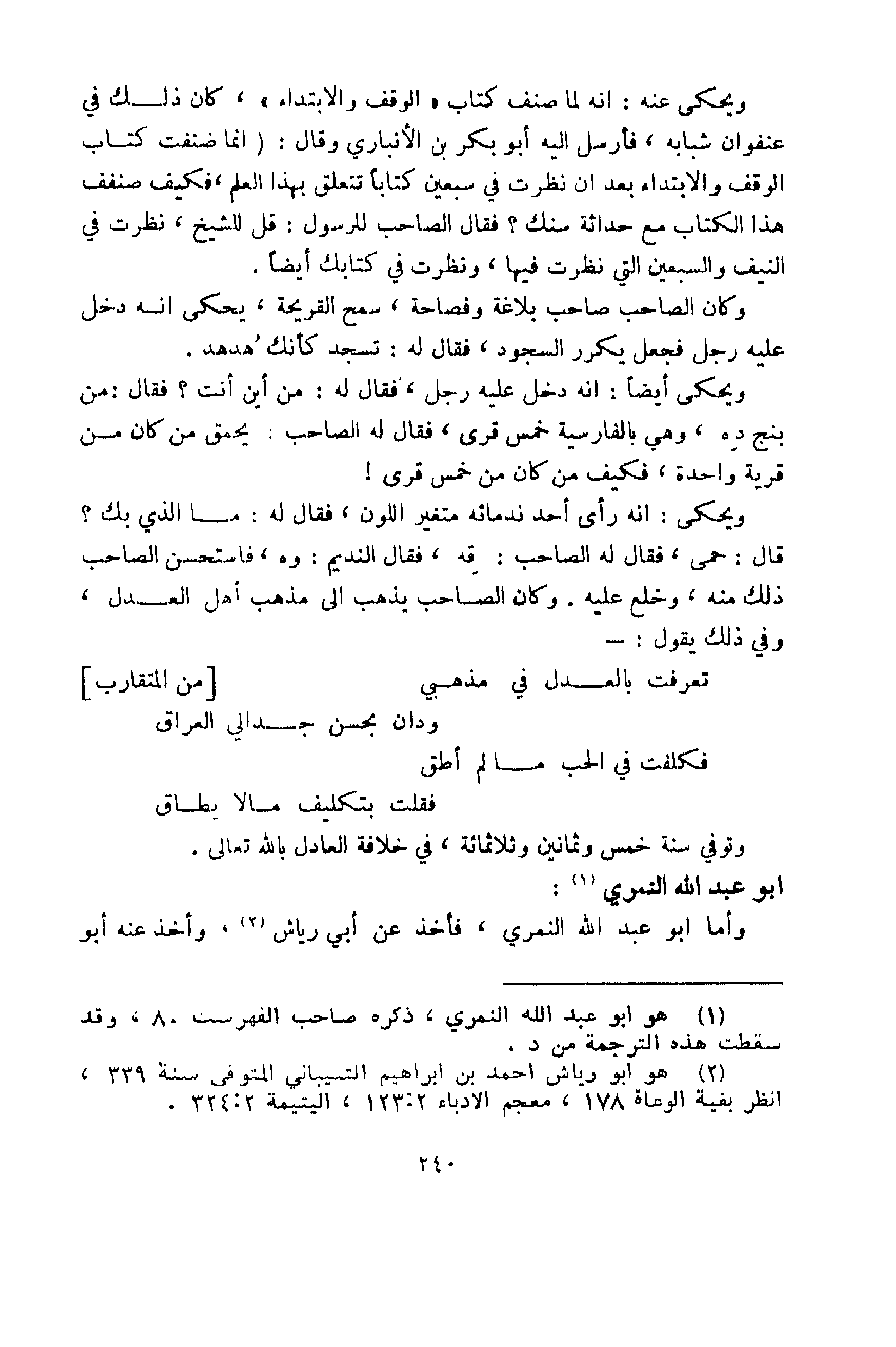 وأما أبو عبد الله النمري؛ فأخذ عن أبي رياش، وأخذ عنه أبو