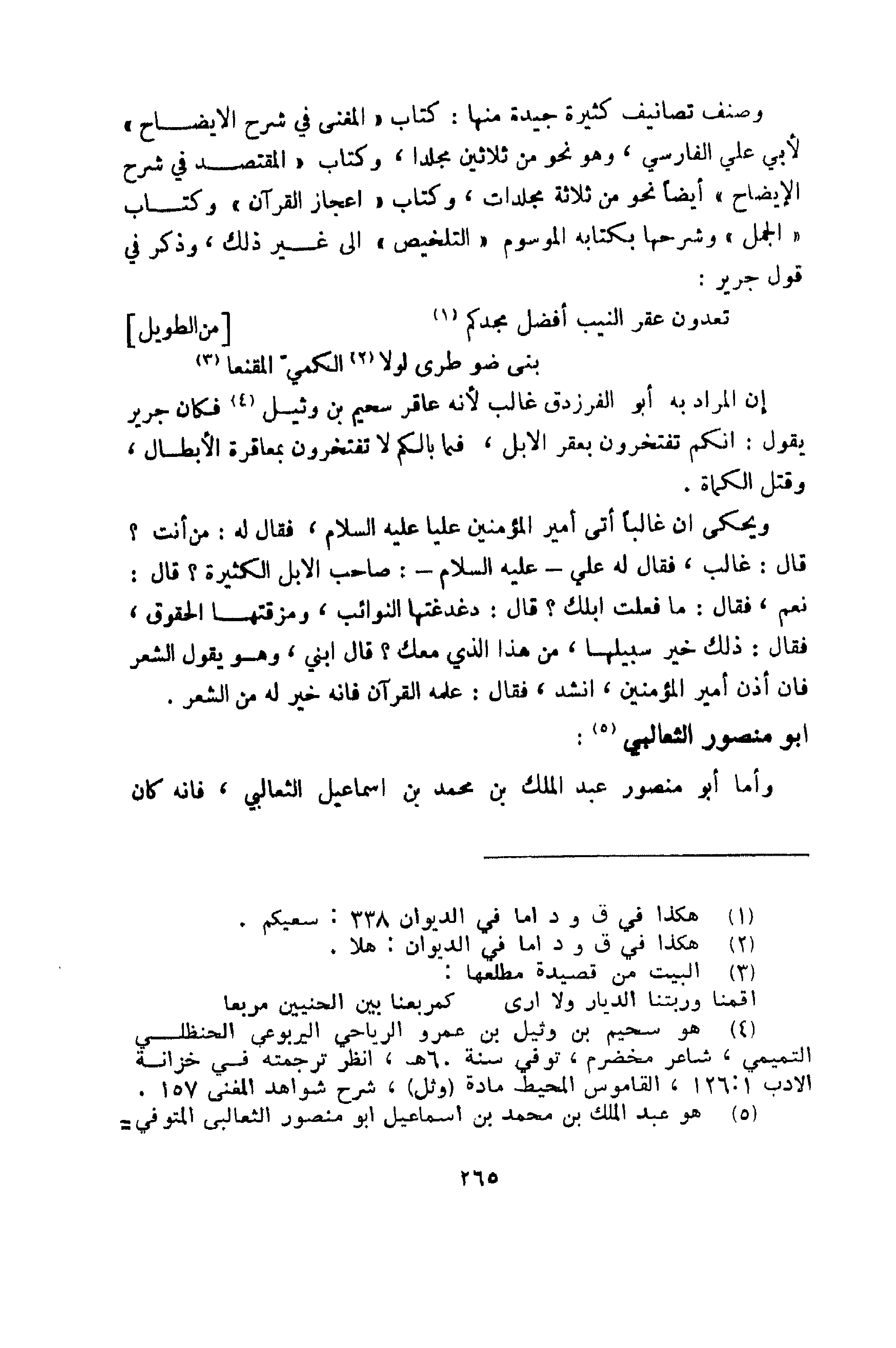 وأما أبو منصور عبد الملك بن محمد بن إسماعيل الثعالبي، فإنه كان