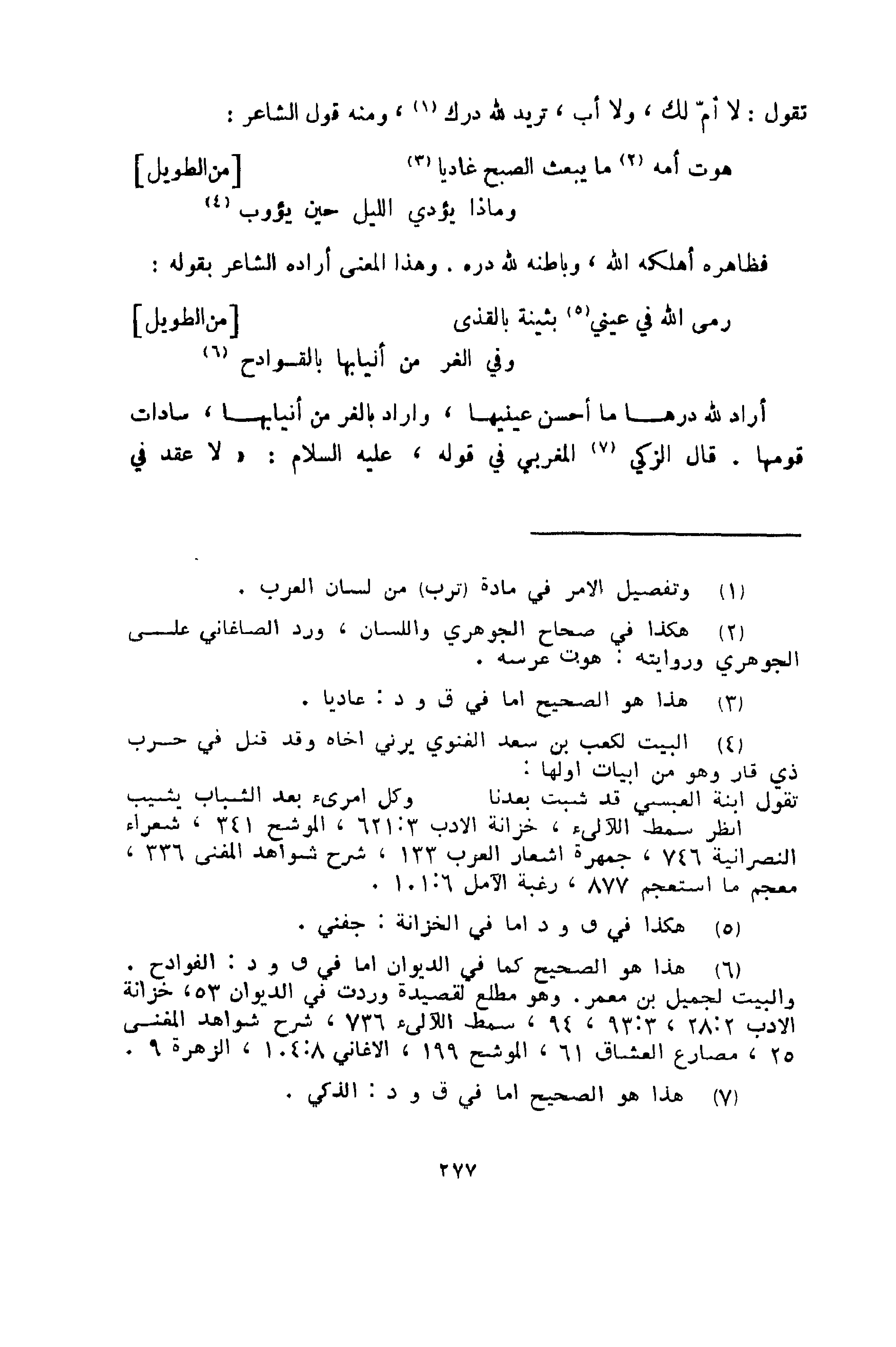 تقول: لا أم لك، تريد: لله درك! ومنه قول الشاعر:
