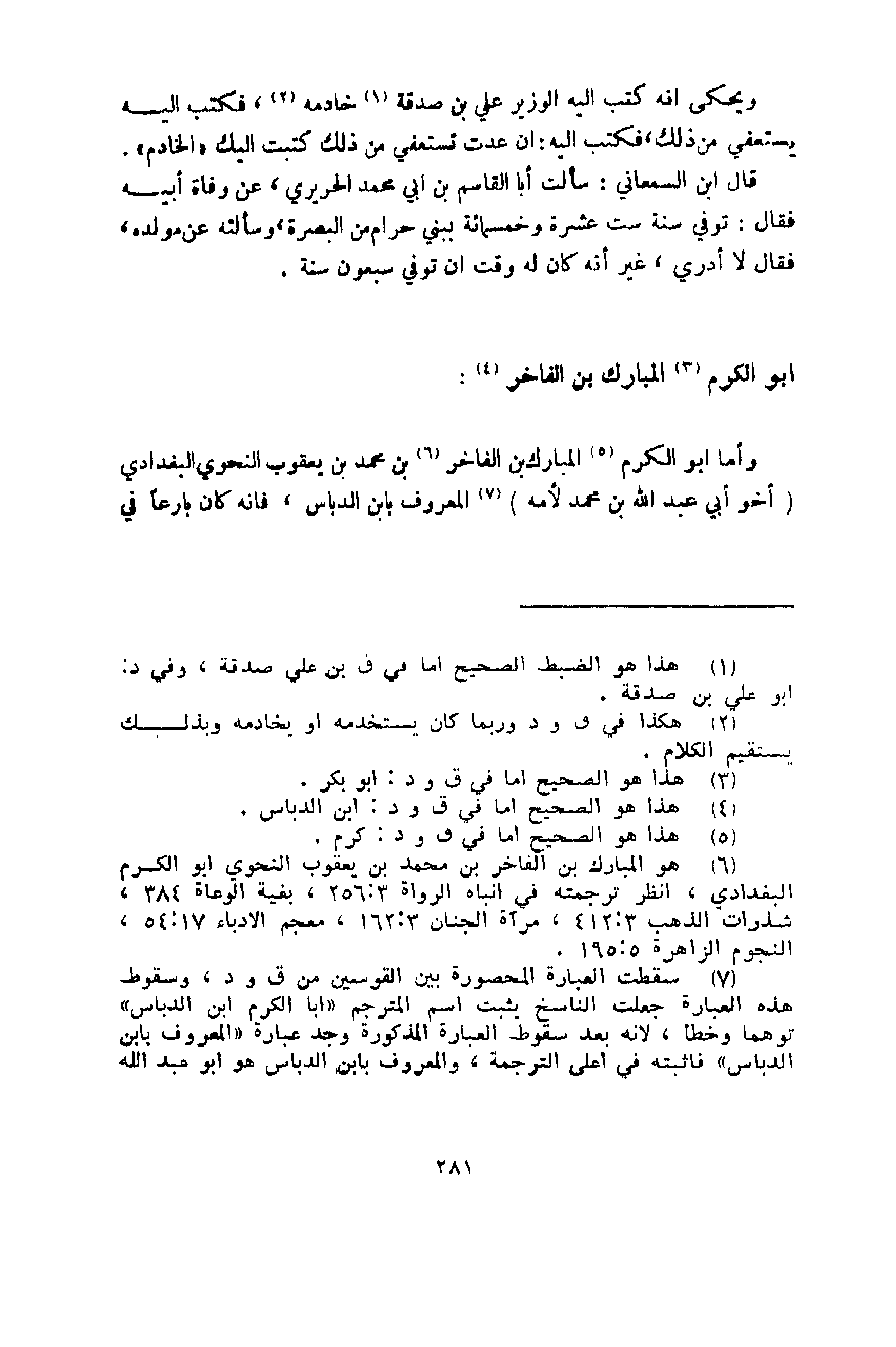 وأما أبو الكرم المبارك بن فاخر بن محمد بن يعقوب النحوي البغدادي [أخو أبي عبد الله الحسين بن محمد لأمه] المعروف بابن الدباس، فإنه كان بارعاً في