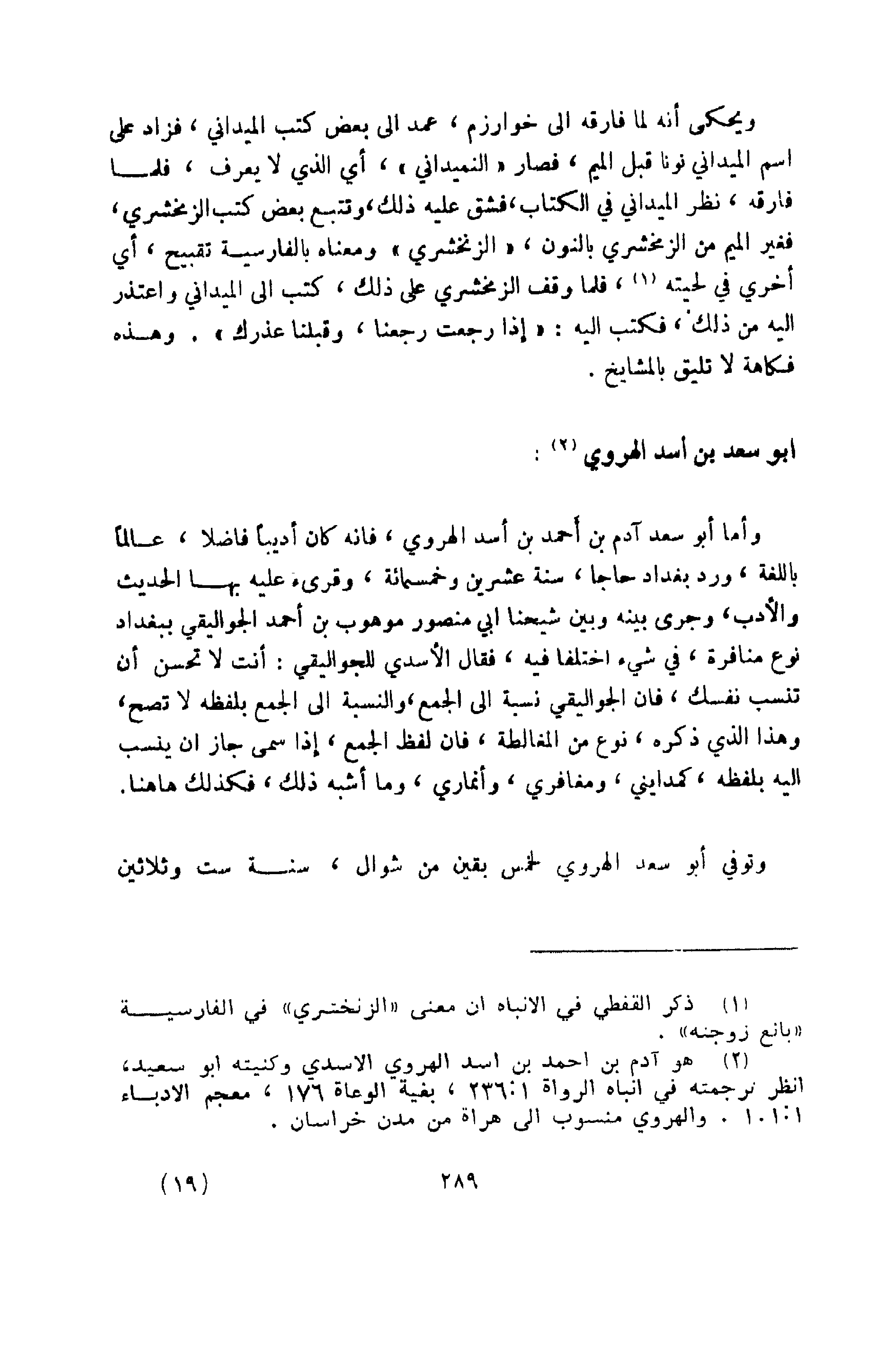 وأما أبو سعد آدم بن أحمد بن أسد الهروي، فإنه كان أديباً فاضلاً، عالماً باللغة، وورد بغداد حاجاً سنة عشرين وخمسمائة، وقرئ عليه بها الحديث والأدب.