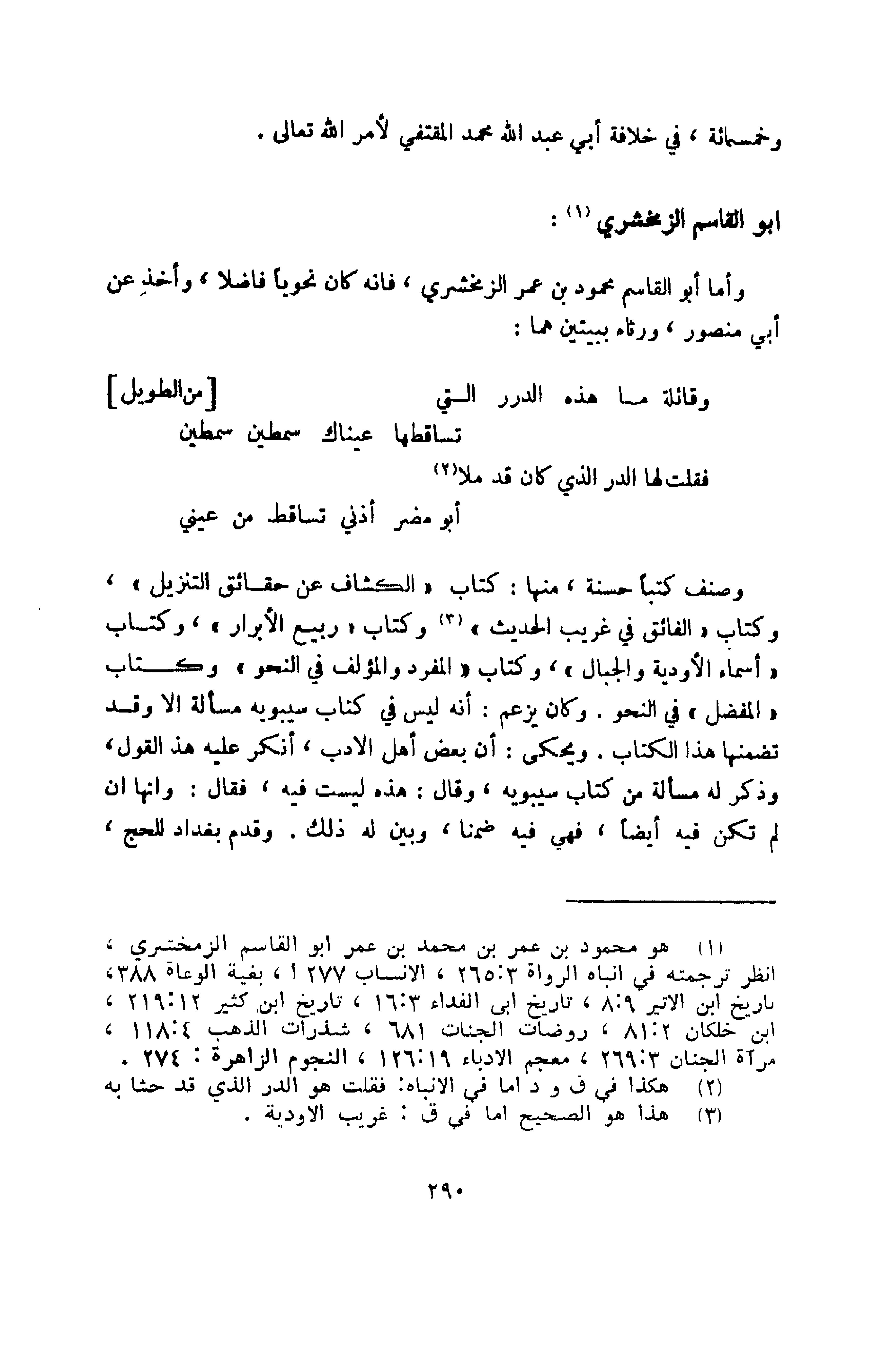 وأما أبو القاسم محمود بن عمر الزمخشري، فإنه كان نحوياً فاضلاً، وأخذ عن أبي مضر، ورثاه ببيتين وهما: