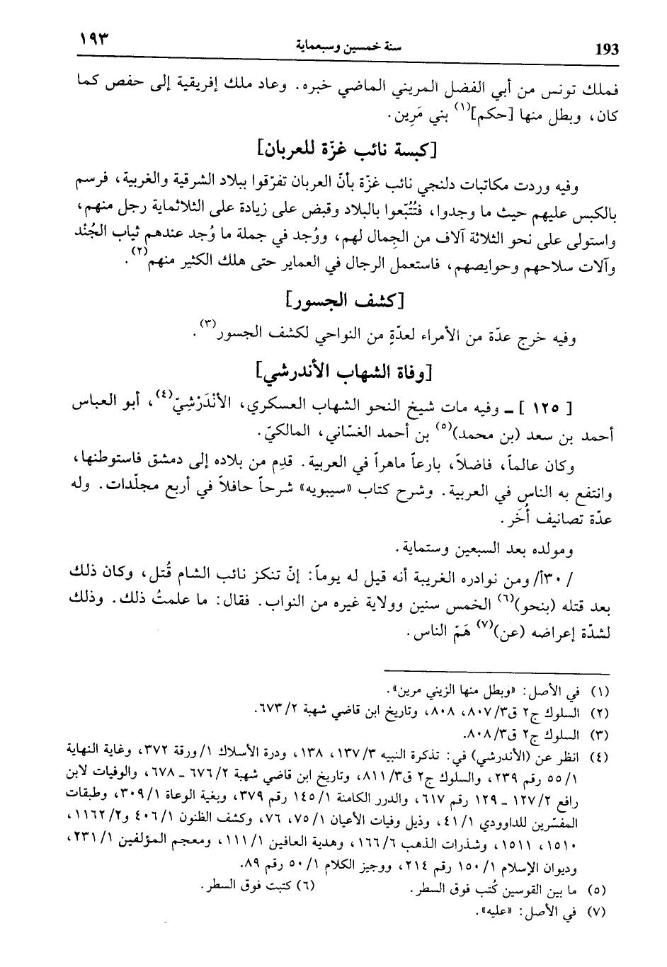 (¬4) انظر عن (الأندرشي) في: تذكرة النبيه 3/ 137، 138، ودرة الأسلاك 1 / ورقة 372، وغاية النهاية 1/ 55 رقم 239، والسلوك ج 2 ق 3/ 811، وتاريخ ابن قاضي شهبة 2/ 676 - 678، والوفيات لابن رافع 2/ 127 - 129 رقم 617، والدرر الكامنة 1/ 145 رقم 379، وبغية الوعاة 1/ 309، وطبقات المفسّرين للداوودي 1/ 41، وذيل وفيات الأعيان 1/ 75، 76، وكشف الظنون 1/ 406 و 2/ 1162، 1510، 1511، وشذرات الذهب 6/ 166، وهدية العافين 1/ 111، ومعجم المؤلفين 1/ 231، وديوان الإسلام 1/ 150 رقم 214، ووجيز الكلام 1/ 50 رقم 89.