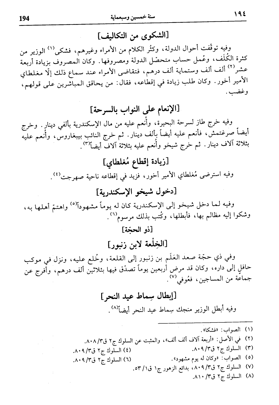 (¬7) السلوك ج 2 ق 3/ 809، بدائع الزهور ج 1 ق 1/ 53.