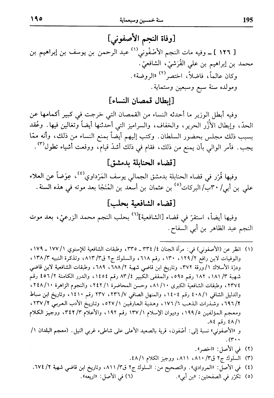 وفيه أبطل الوزير ما أحدثه النساء من القمصان التي خرجت في كبير أكمامها عن الحدّ، وإبطال الأزر الحرير، والخفاف، والسراميز التي أحدثنها أيضا وتغالين فيها. وعقد بسبب ذلك مجلس بحضور السلطان. وكتب إليهم أيضا بمنع النساء من ذلك، وأنه ممّا يجب. فأمر الوالي بأن يمنع من ذلك، فقام في ذلك أشدّ قيام، ووقعت أشياء تطول (¬3).
