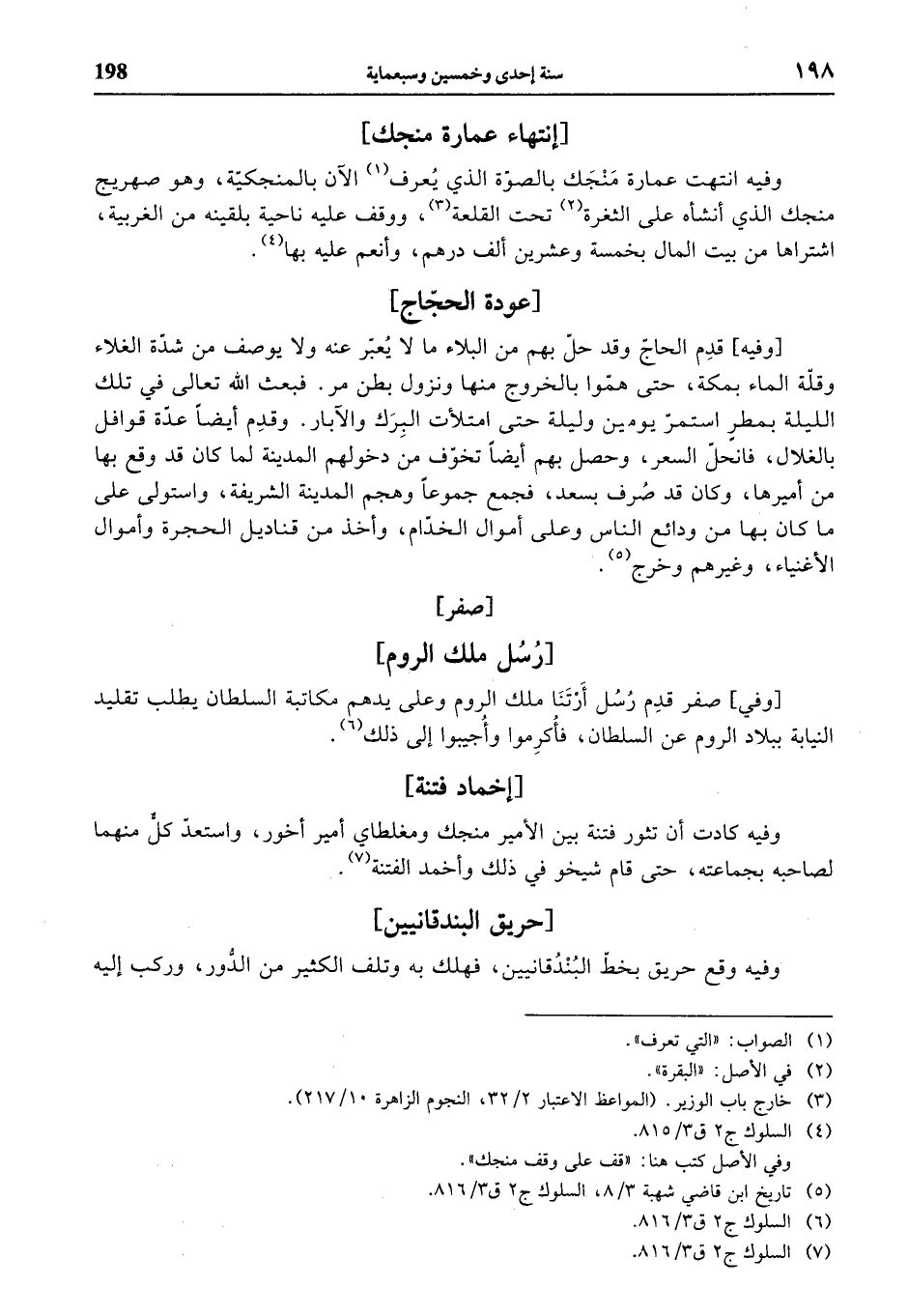 (¬5) تاريخ ابن قاضي شهبة 3/ 8، السلوك ج 2 ق 3/ 816.