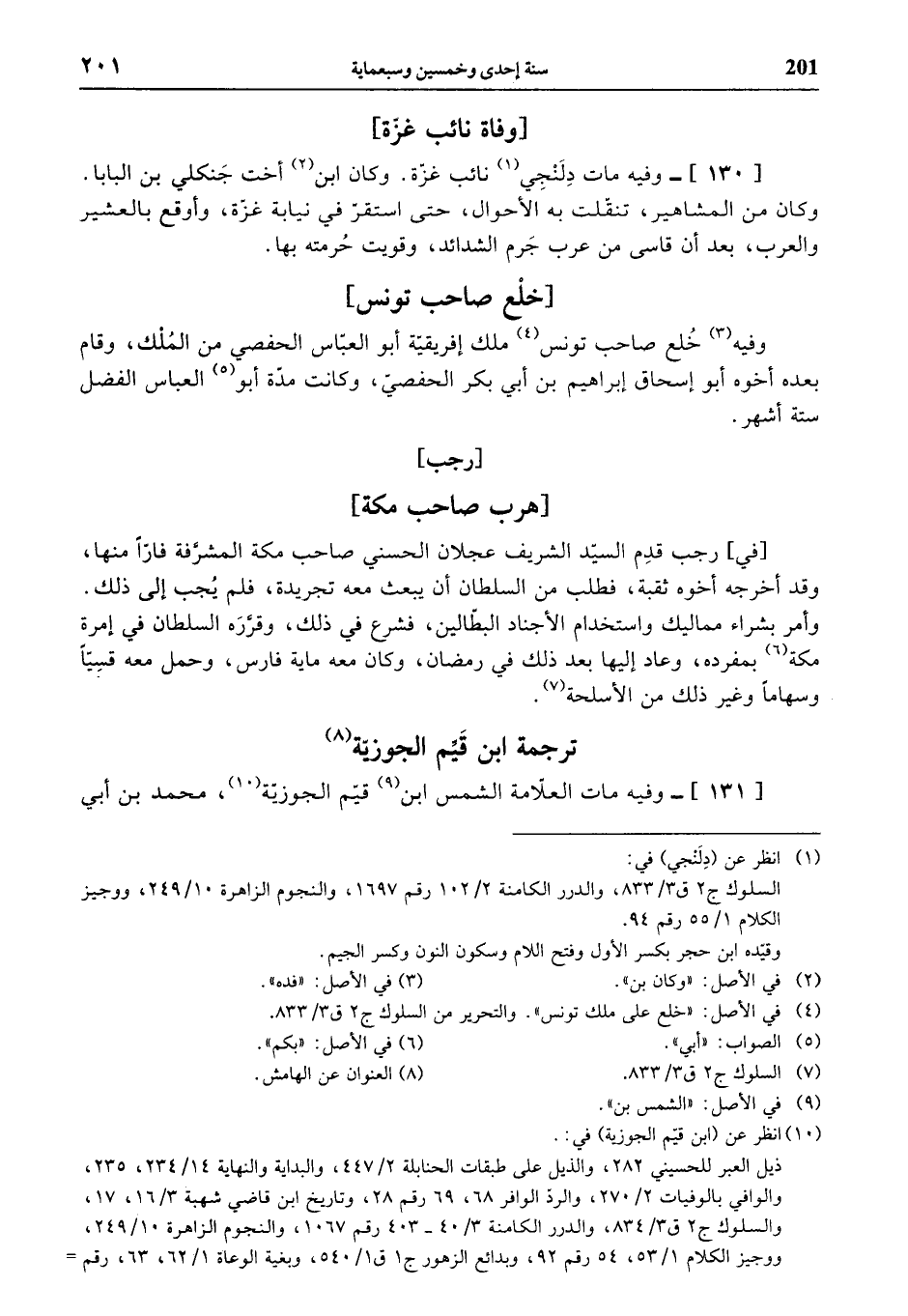 [131]- وفيه مات العلاّمة الشمس ابن (¬9) قيّم الجوزيّة (¬10)، محمد بن أبي