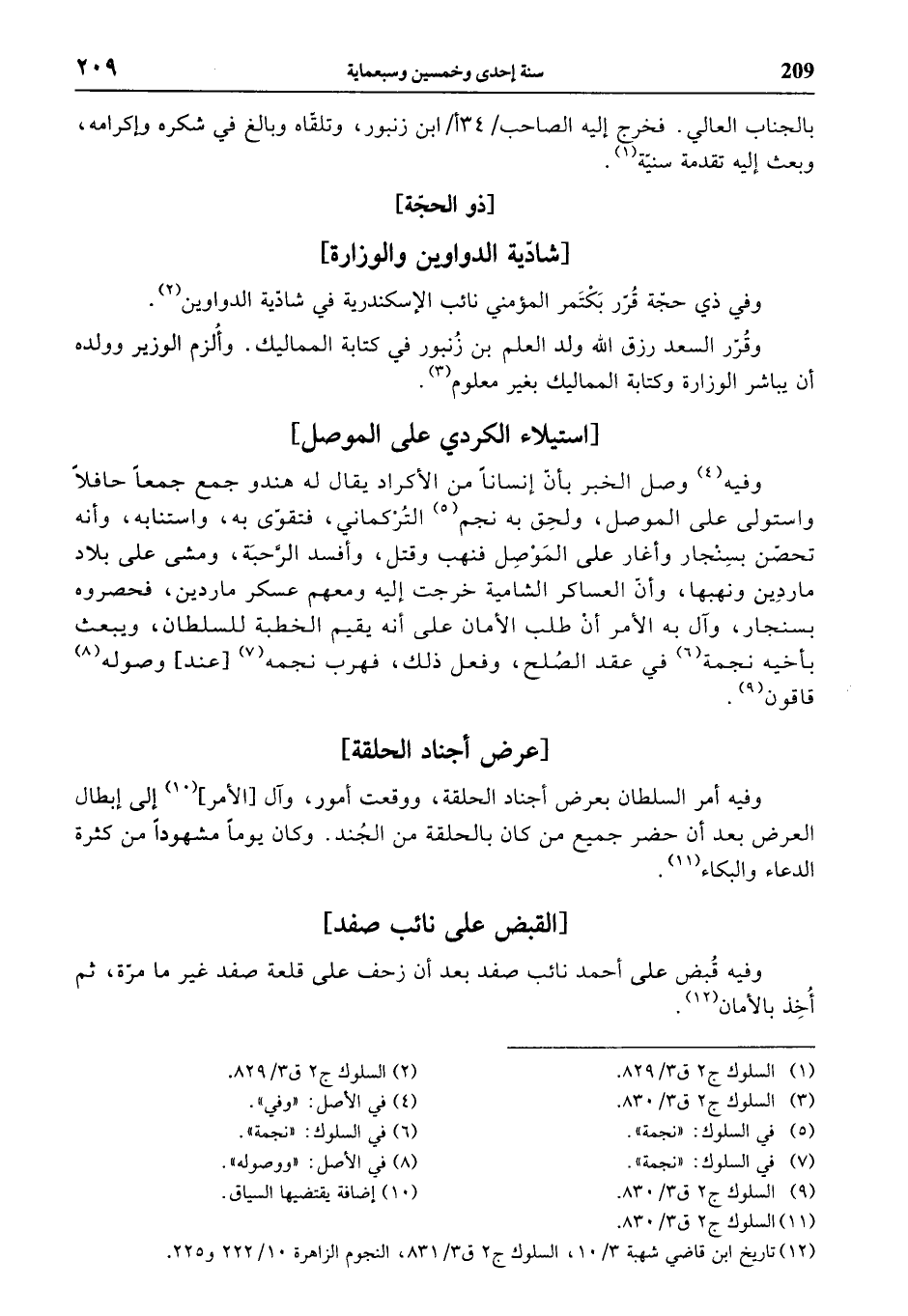 (¬12) تاريخ ابن قاضي شهبة 3/ 10، السلوك ج 2 ق 3/ 831، النجوم الزاهرة 10/ 222 و 225.