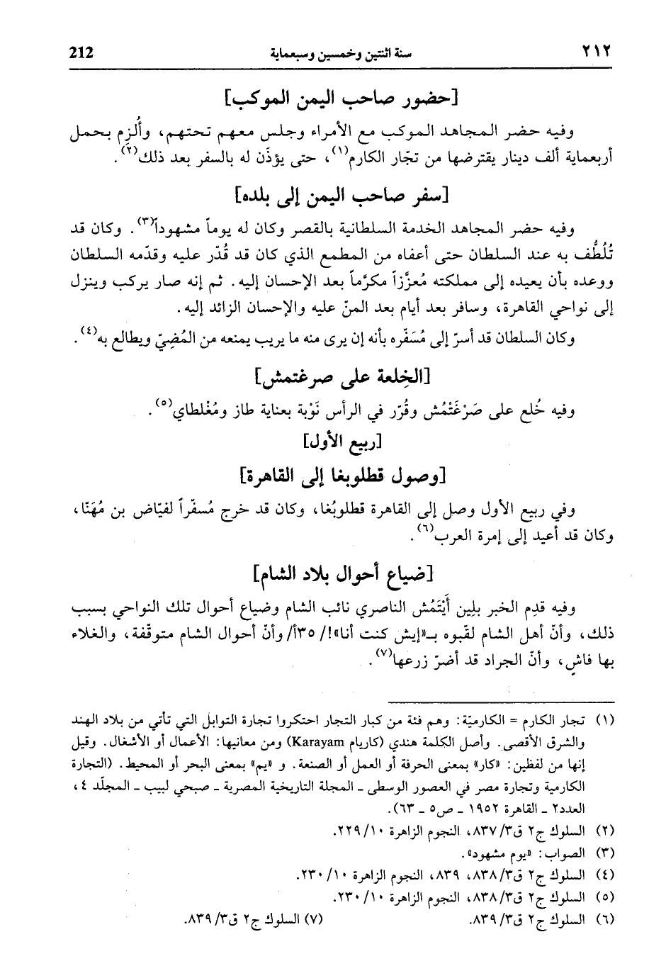 (¬5) السلوك ج 2 ق 3/ 838، النجوم الزاهرة 10/ 230.