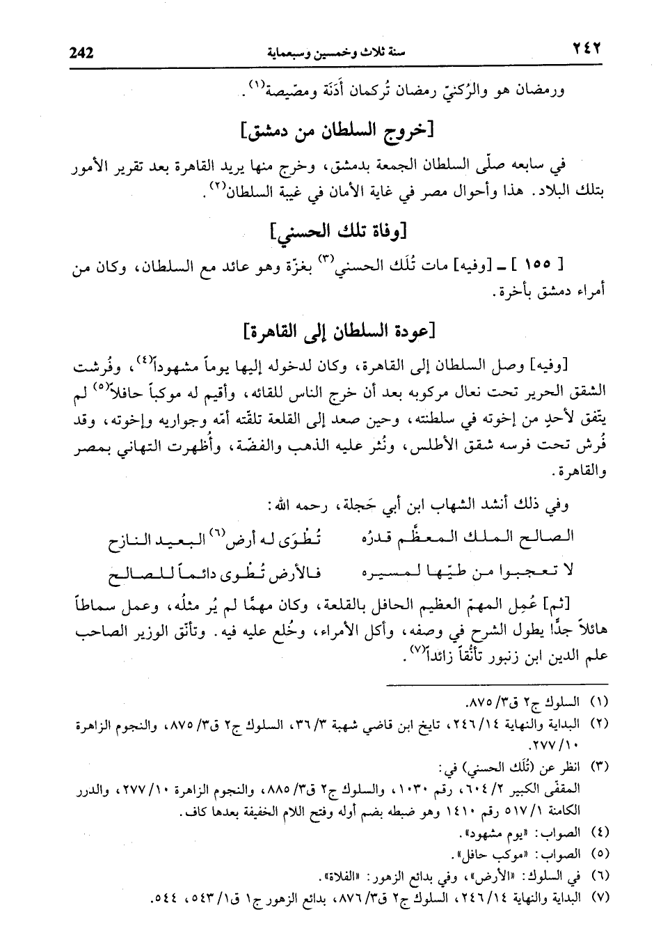 (¬7) البداية والنهاية 14/ 246، السلوك ج 2 ق 3/ 876، بدائع الزهور ج 1 ق 1/ 543، 544.