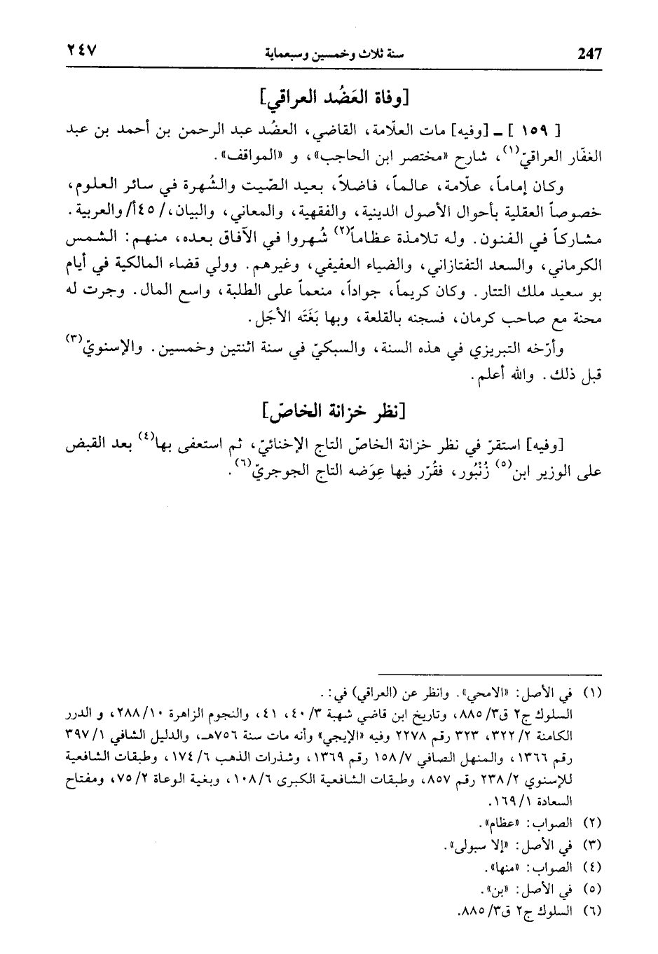 [159]-، [وفيه] مات العلاّمة، القاضي، العضد عبد الرحمن بن أحمد بن عبد الغفّار العراقيّ (¬1)، شارح «مختصر ابن الحاجب»، و «المواقف».