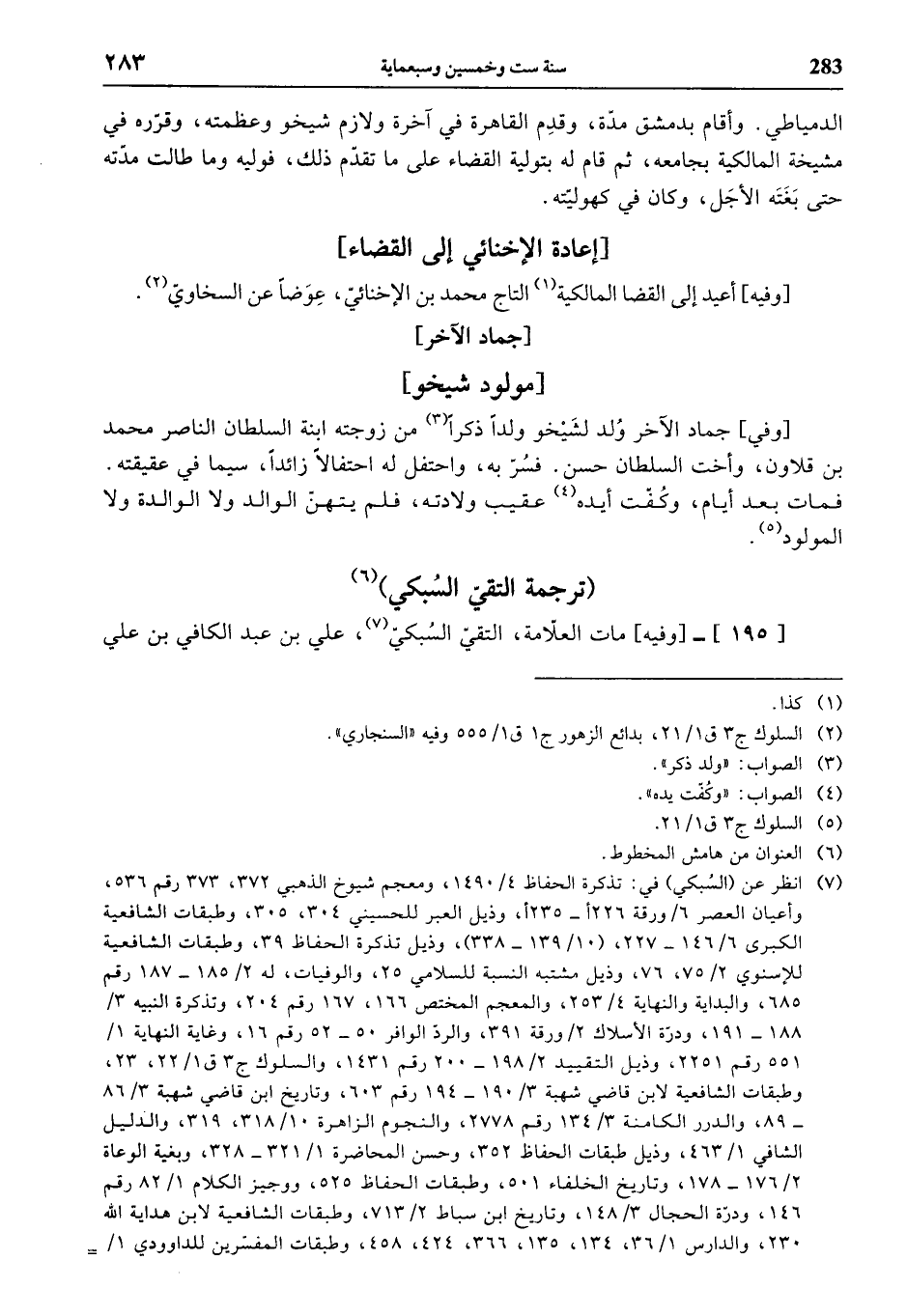 [195]-، [وفيه] مات العلاّمة، التقيّ السبكيّ (¬7)، علي بن عبد الكافي بن علي