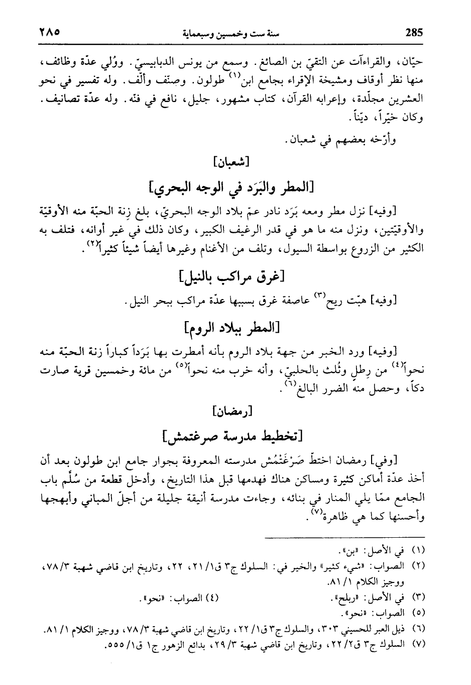 (¬6) ذيل العبر للحسيني 303، والسلوك ج 3 ق 1/ 22، وتاريخ ابن قاضي شهبة 3/ 78، ووجيز الكلام 1/ 81.