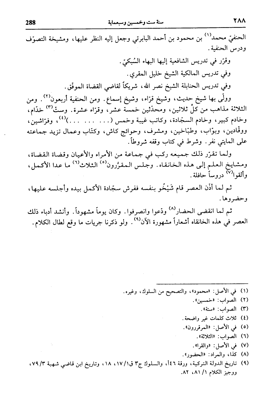 ثم لما انقضى الحضار (¬8) ودّعوا وانصرفوا. وكان يوما مشهودا. وأنشد أدباء ذلك العصر في هذه الخانقاه أشعارا مشهورة الآن (¬9). ولو ذكرنا جريات ما وقع لطال الكلام.