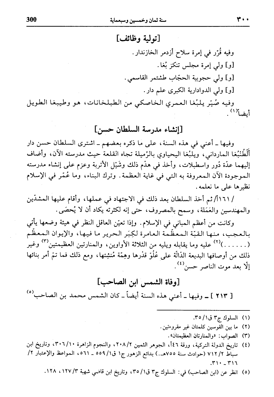 (¬4) تاريخ الدولة التركية، ورقة 46 أ، الجوهر الثمين 2/ 208، والنجوم الزاهرة 10/ 306، وتاريخ ابن سباط 2/ 712 (حوادث سنة 755 هـ.) بدائع الزهور ج 1 ق 1/ 559 - 561، المواعظ والإعتبار 2/ 316 - 310.