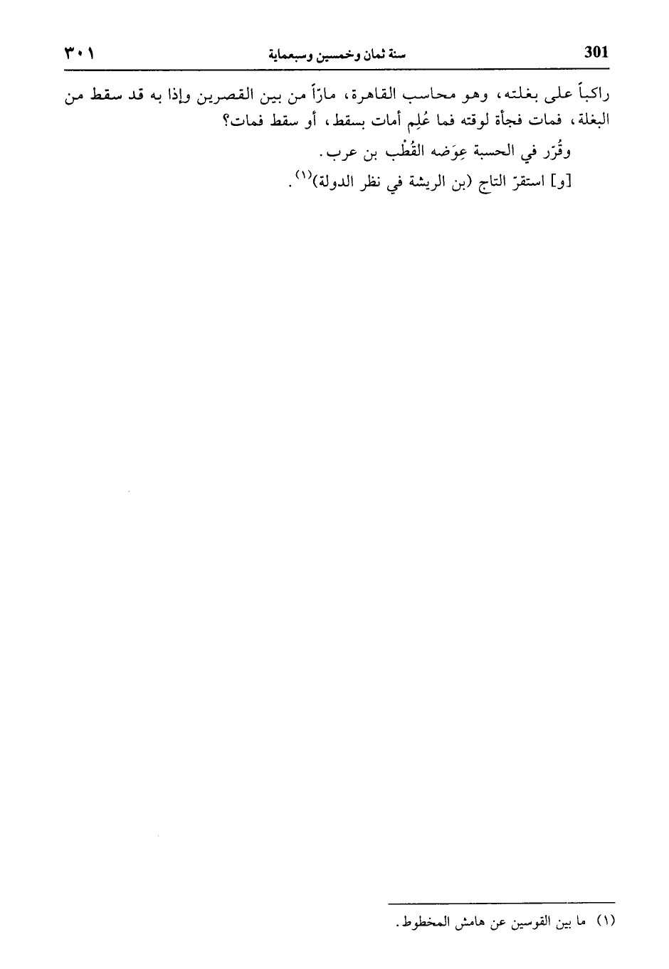 وقرّر في الحسبة عوضه القطب بن عرب.