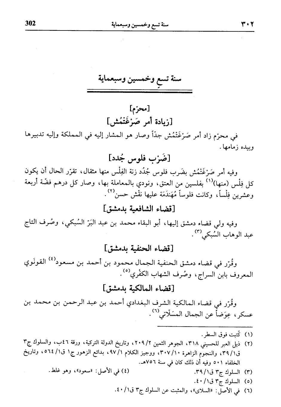 وفيه أمر صرغتمش بضرب فلوس جدد زنة الفلس منها مثقال، تقرّر الحال أن يكون كل فلس (منها) (¬1) بفلسين من العتق، ونودي بالمعاملة بها، وصار كل درهم فضّة أربعة وعشرين فلسا، وكانت فلوسا مهندمة عليها نقش حسن (¬2).