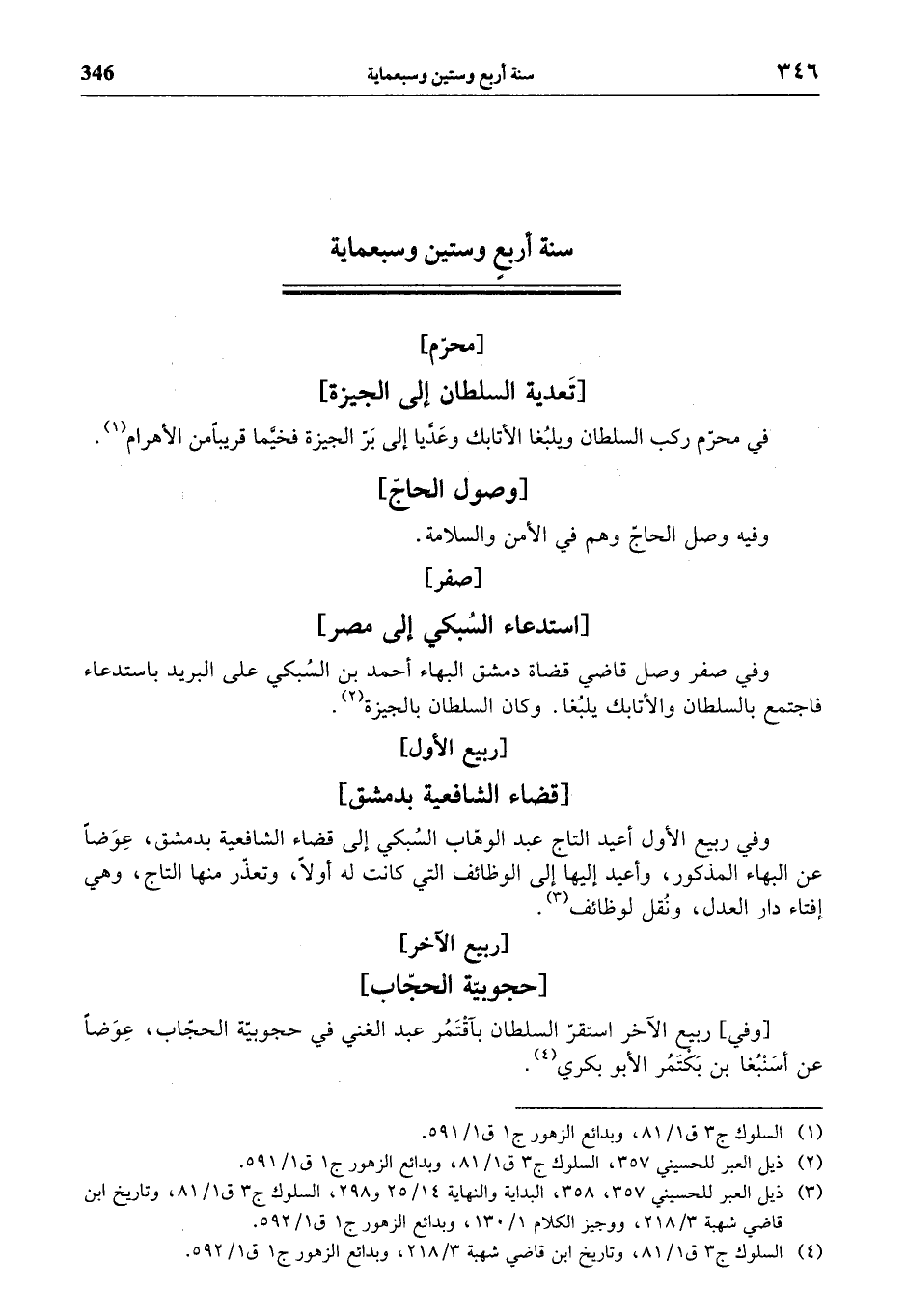 (¬3) ذيل العبر للحسيني 357، 358، البداية والنهاية 14/ 25 و 298، السلوك ج 3 ق 1/ 81، وتاريخ ابن قاضي شهبة 3/ 218، ووجيز الكلام 1/ 130، وبدائع الزهور ج 1 ق 1/ 592.