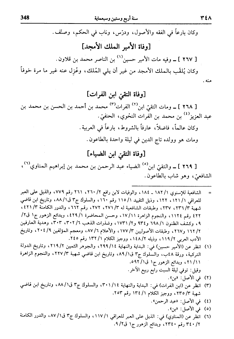 (¬3) انظر عن (ابن الفرات) في: البداية والنهاية 14/ 301، والسلوك ج 3 ق 1/ 88، وتاريخ ابن قاضي شهبة 3/ 235، ووجيز الكلام 1/ 134 رقم 253.