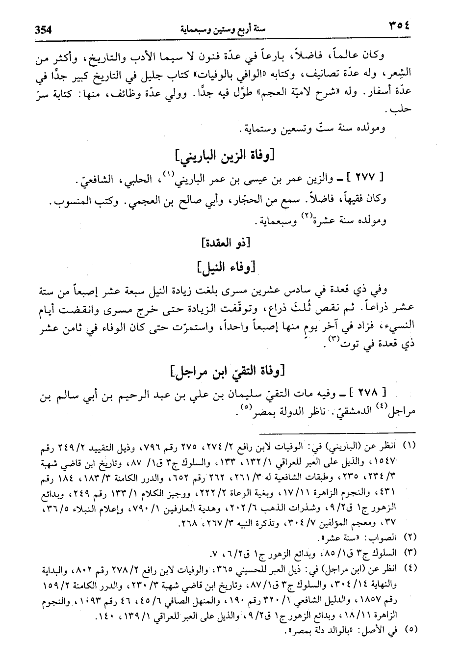 (¬1) انظر عن (الباريني) في: الوفيات لابن رافع 2/ 274، 275 رقم 796، وذيل التقييد 2/ 249 رقم 1547، والذيل على العبر للعراقي 1/ 132، 133، والسلوك ج 3 ق 1/ 87، وتاريخ ابن قاضي شهبة 3/ 234، 235، وطبقات الشافعية له 3/ 261، 262 رقم 652، والدرر الكامنة 3/ 183، 184 رقم 431، والنجوم الزاهرة 11/ 17، وبغية الوعاة 2/ 222، ووجيز الكلام 1/ 133 رقم 249، وبدائع الزهور ج 1 ق 2/ 9، وشذرات الذهب 6/ 202، وهدية العارفين 1/ 790، وإعلام النبلاء 5/ 36، 37، ومعجم المؤلفين 7/ 304، وتذكرة النبيه 3/ 267، 268.