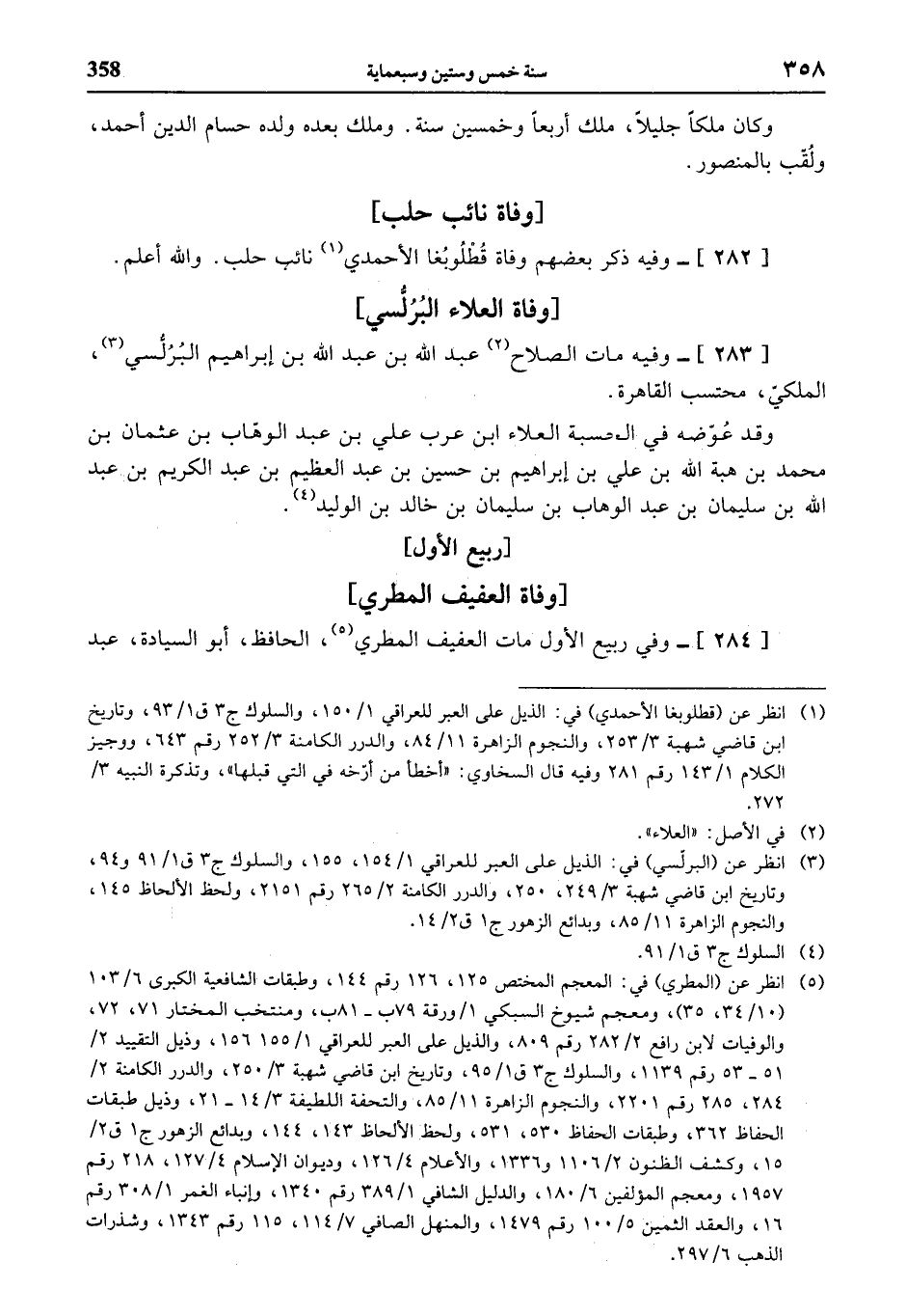 (¬3) انظر عن (البرلّسي) في: الذيل على العبر للعراقي 1/ 154، 155، والسلوك ج 3 ق 1/ 91 و 94، وتاريخ ابن قاضي شهبة 3/ 249، 250، والدرر الكامنة 2/ 265 رقم 2151، ولحظ الألحاظ 145، والنجوم الزاهرة 11/ 85، وبدائع الزهور ج 1 ق 2/ 14.