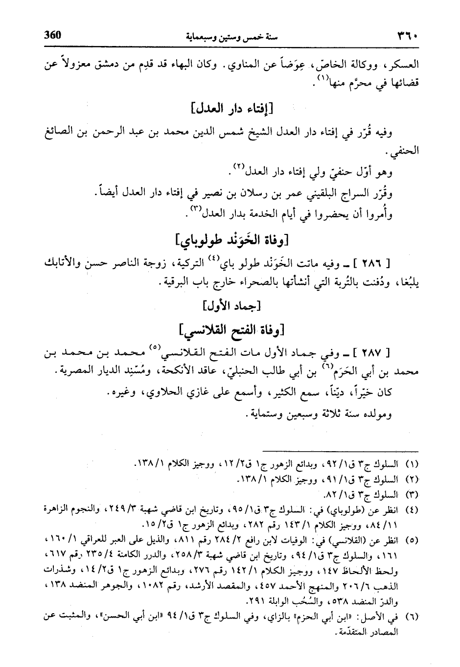 (¬5) انظر عن (القلانسي) في: الوفيات لابن رافع 2/ 284 رقم 811، والذيل على العبر للعراقي 1/ 160، 161، والسلوك ج 3 ق 1/ 94، وتاريخ ابن قاضي شهبة 3/ 258، والدرر الكامنة 4/ 235 رقم 617، ولحظ الألحاظ 147، ووجيز الكلام 1/ 142 رقم 276، وبدائع الزهور ج 1 ق 2/ 14، وشذرات الذهب 6/ 206 والمنهج الأحمد 457، والمقصد الأرشد، رقم 1082، والجوهر المنضد 138، والدرّ المنضد 538، والسحب الوابلة 291.