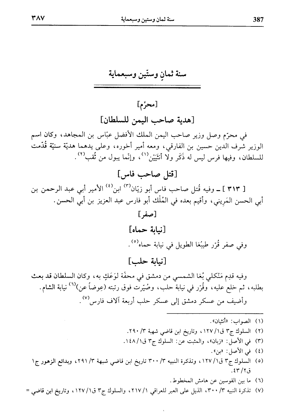 (¬5) السلوك ج 3 ق 1/ 127، وتذكرة النبيه 3/ 300 تاريخ ابن قاضي شهبة 3/ 291، وبدائع الزهور ج 1 ق 2/ 43.