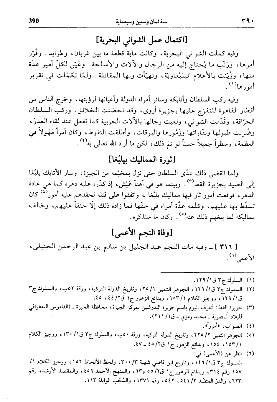 (¬6) انظر عن (الأعمى) في: السلوك ج 3 ق 1/ 146، وتاريخ ابن قاضي شهبة 3/ 300، ولحظ الألحاظ 152، ووجيز الكلام 1/ 157 رقم 314، وبدائع الزهور ج 1 ق 2/ 55 و 63، والمنهج الأحمد 459، والمقصد الأرشد، رقم 623، والدرّ المتضّد 2/ 541، 542، رقم 1371، والسحب الوابلة 113.