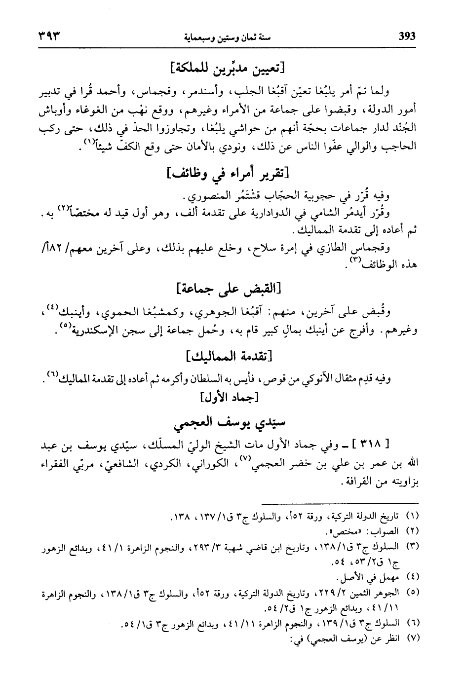 (¬5) الجوهر الثمين 2/ 229، وتاريخ الدولة التركية، ورقة 52 أ، والسلوك ج 3 ق 1/ 138، والنجوم الزاهرة 11/ 41، وبدائع الزهور ج 1 ق 2/ 54.