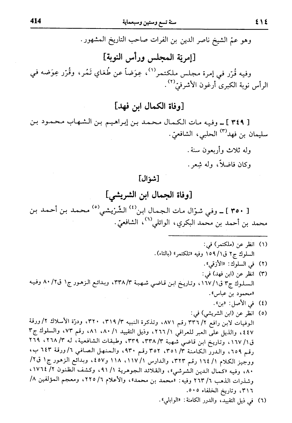 [350]- وفي شوّال مات الجمال ابن (¬4) الشّريشي (¬5) محمد بن أحمد بن محمد بن أحمد بن محمد البكري، الوائلي (¬6)، الشافعيّ.