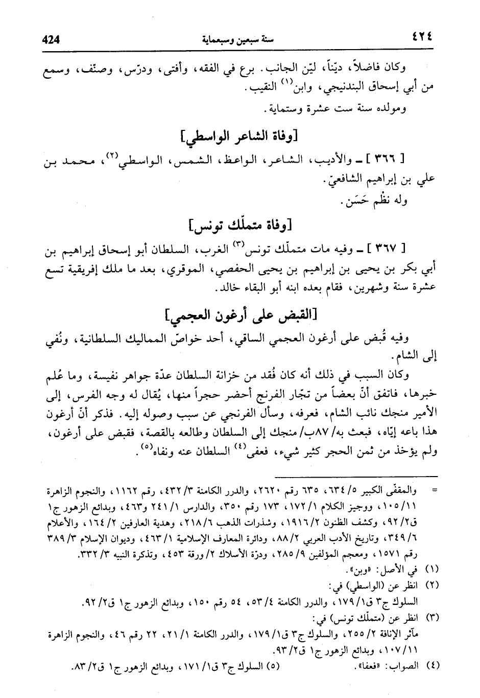 (¬2) انظر عن (الواسطي) في: السلوك ج 3 ق 1/ 179، والدرر الكامنة 4/ 53، 54 رقم 150، وبدائع الزهور ج 1 ق 2/ 92.