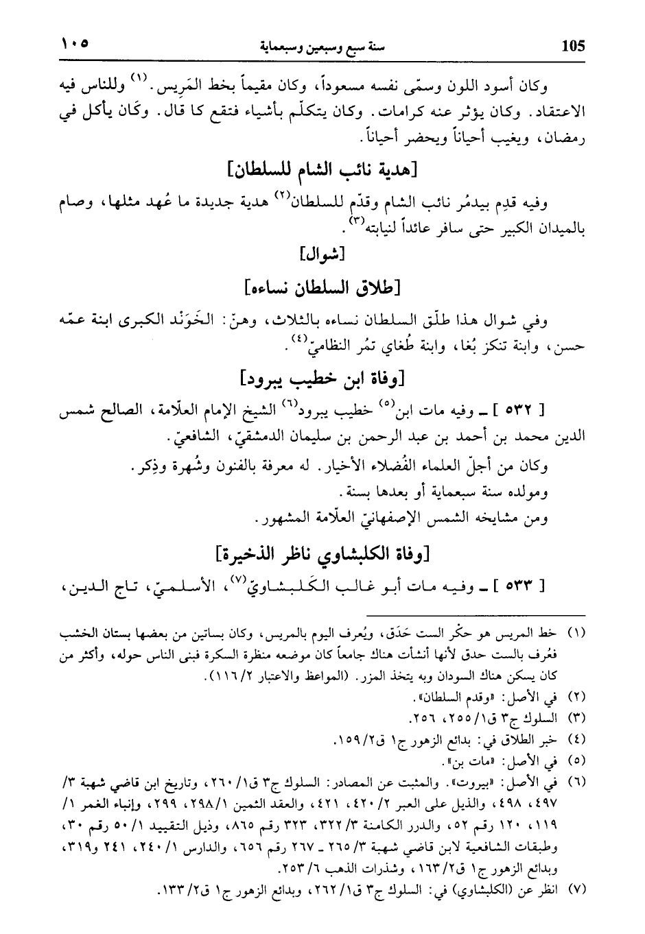 (¬7) انظر عن (الكلبشاوي) في: السلوك ج 3 ق 1/ 262، وبدائع الزهور ج 1 ق 2/ 133.