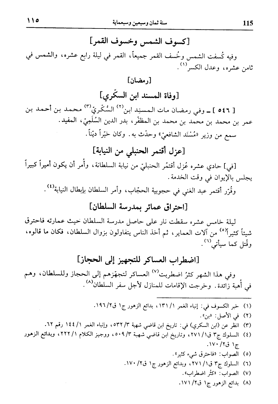 (¬8) بدائع الزهور ج 1 ق 2/ 171.